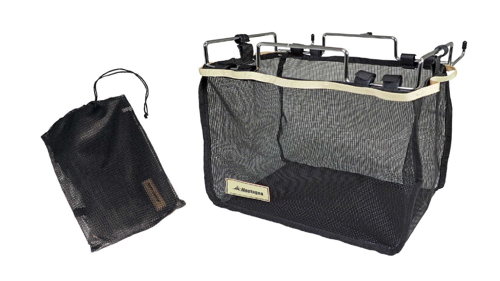 【アウトドア】スチール素材の無骨な収納ギアが登場。周囲を明るく照らす「高輝度カラビナライト」にも注目。'23春Montagna新商品ラインナップを一部公開!