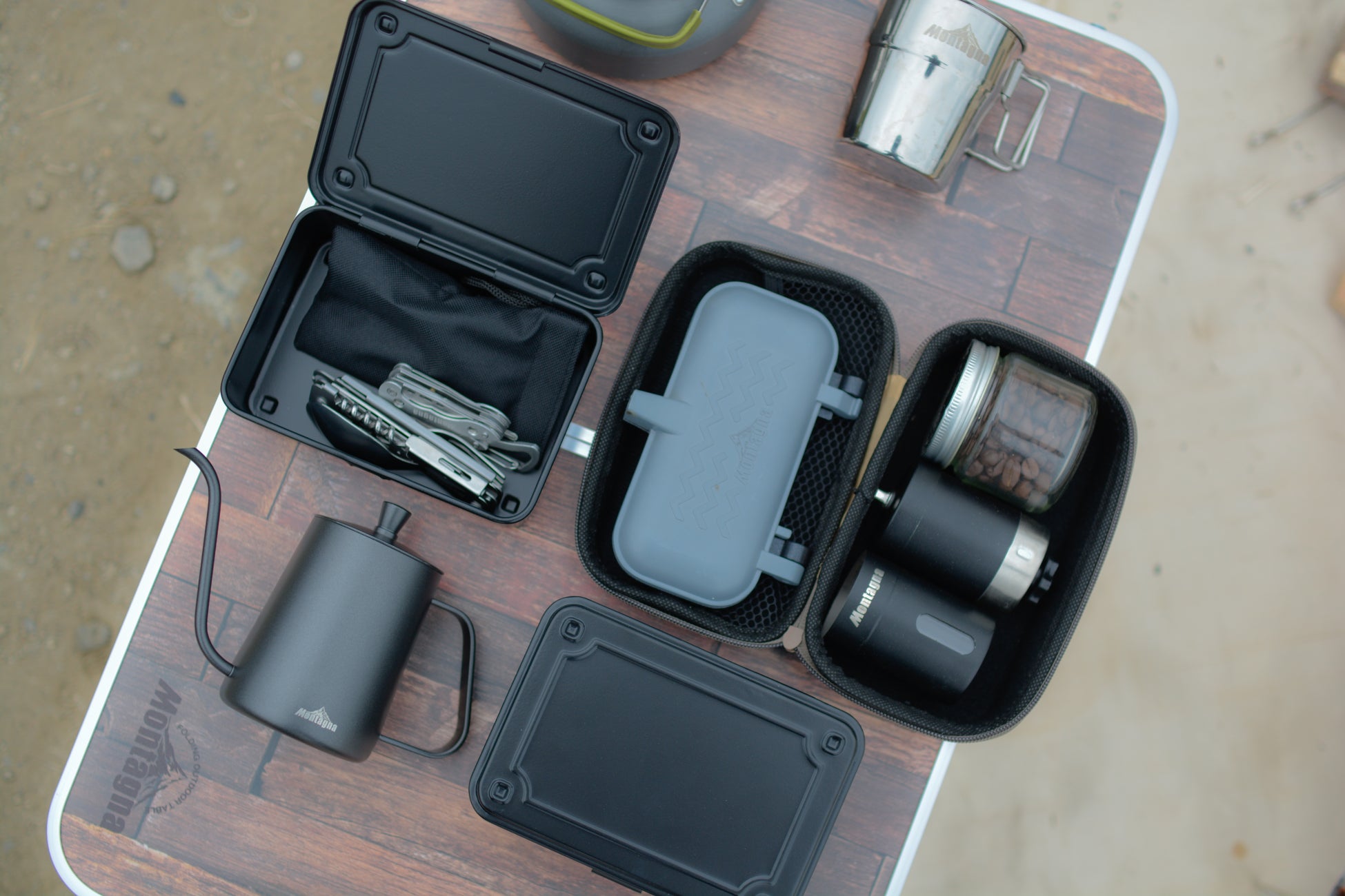 特徴:無骨なデザインのスチールボックス。容量は約750ml!スタッキングが可能で細かい小物やキャンプギアの収納に大活躍。底面にはMontagnaのワンポイントロゴ。