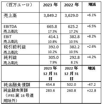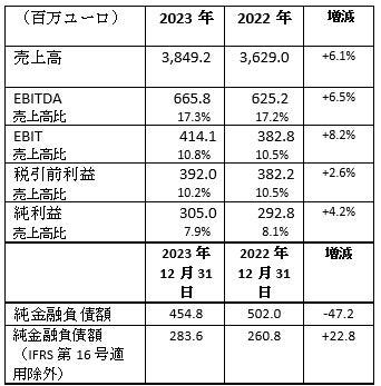 ブレンボグループ 2023年度 連結業績(IFRS基準)