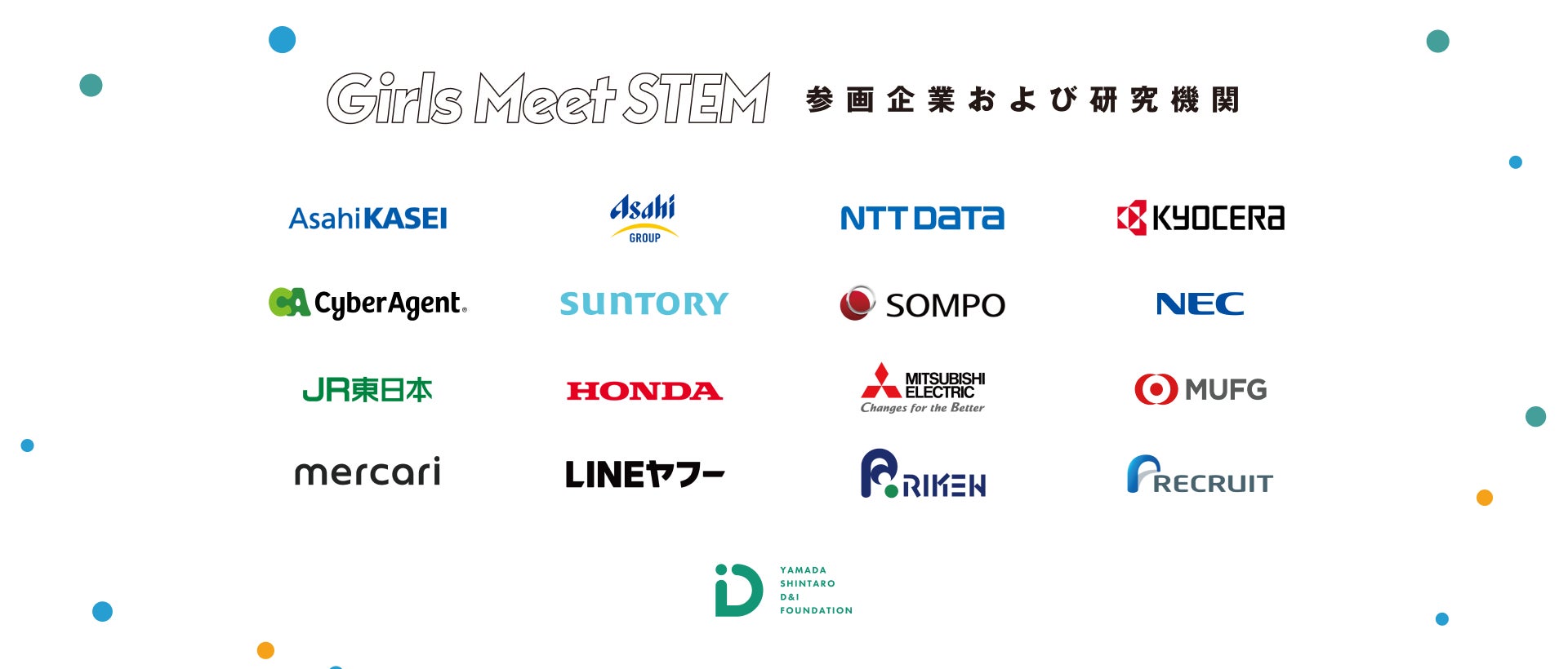 公益財団法人山田進太郎D&I財団は、中高生女子向けのSTEM(理系)領域の職場体験プログラム「Girls Meet STEM Career」を、JR東日本、MUFG、Honda、LINEヤフー、理化学研究所など16の企業および研究機関と連携して立ち上げ、7月11日(木)より参加登録の受付を開始します。プログラムでは企業や研究機関のオフィスツアーやSTEM領域で活躍する社会人女性との交流を通じて、中高生女子が楽しくSTEM領域の職場を体験できる機会を提供します。