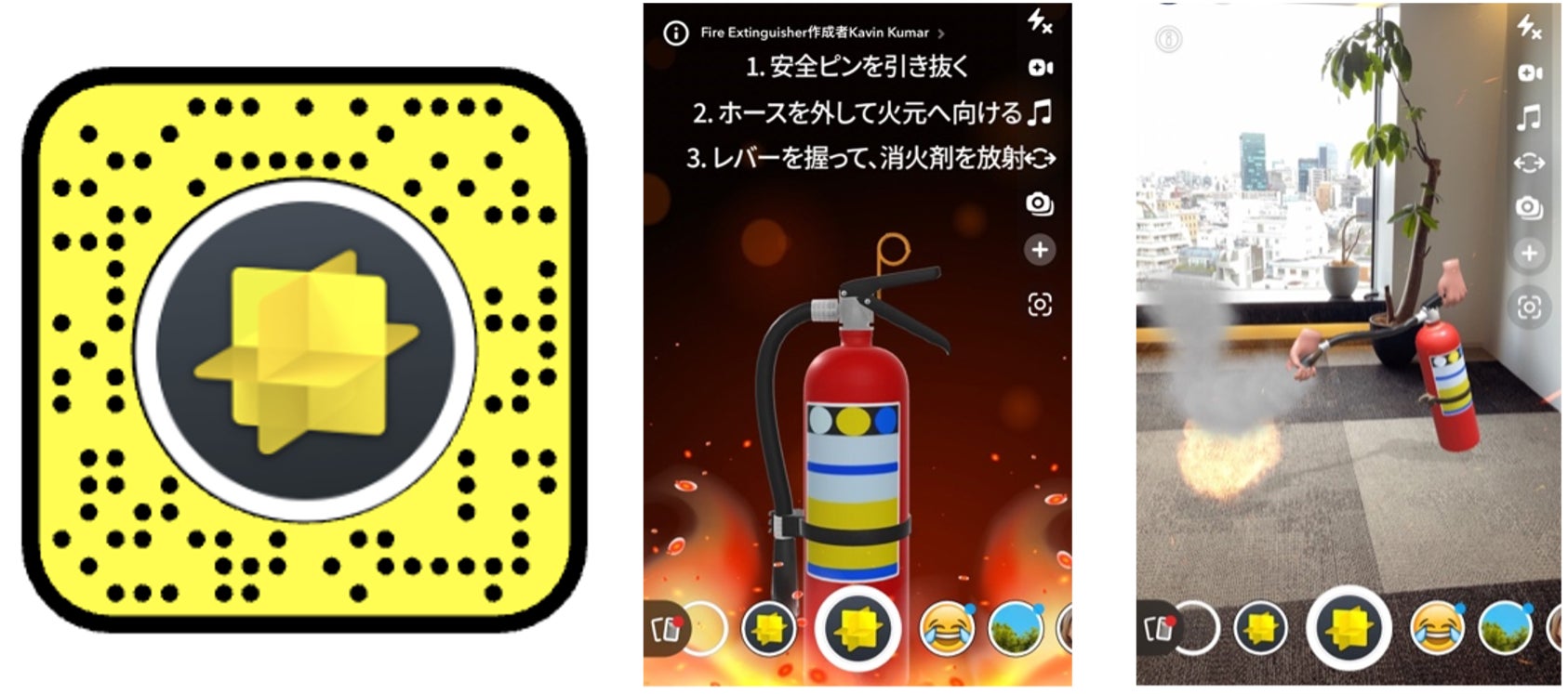 災害時には、火災が周辺に拡大するリスクを軽減するためにも、消火器を使って炎を抑え、その場の火災を鎮めることが最優先です。そこでSnapchatでは、この命を守る装置である消火器の使い方をステップ・バイ・ステップで分かりやすく説明した「消火器の使い方」レンズを開発しました。