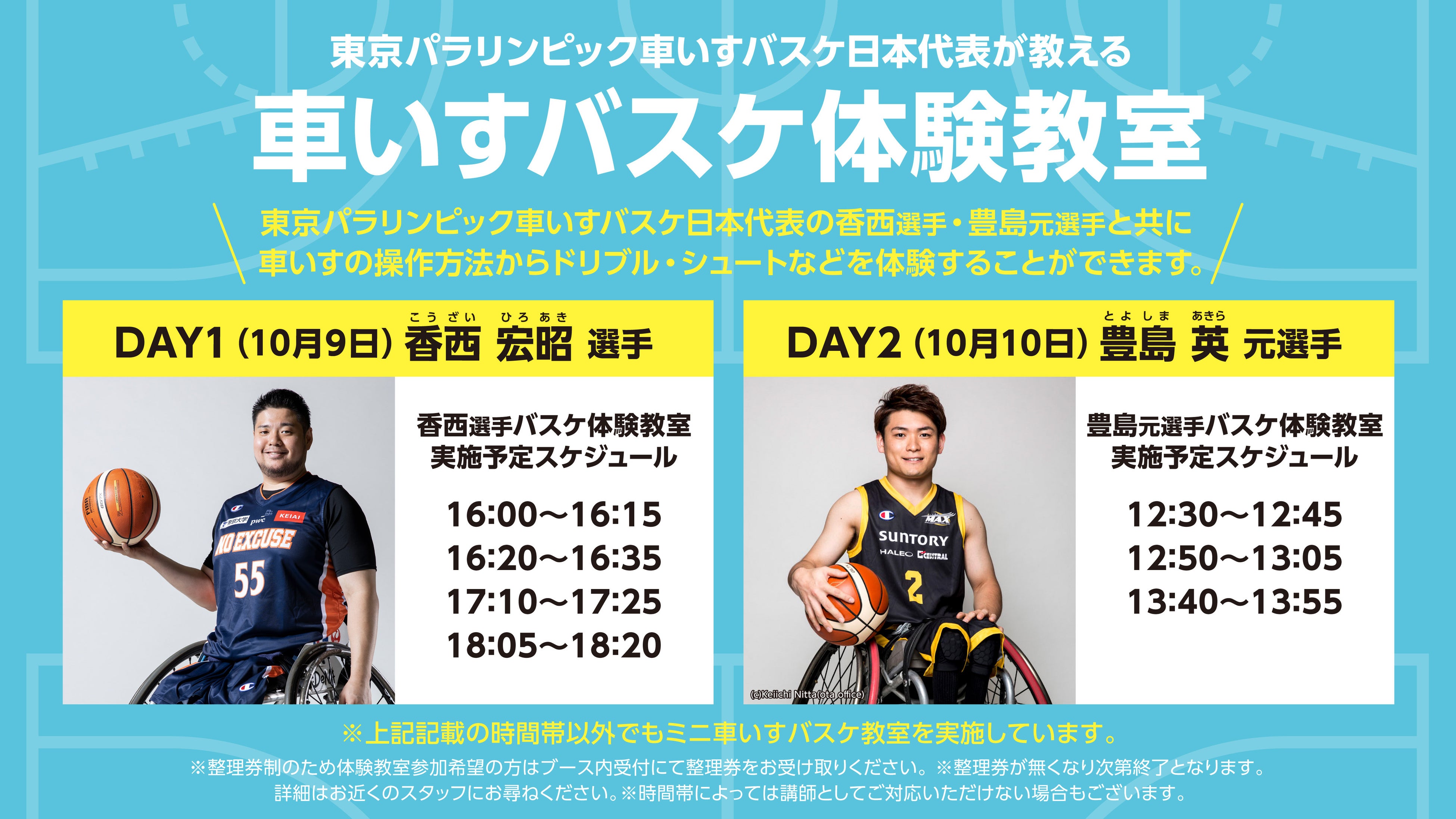 【10月9日・10日ホーム開幕戦】 サブアリーナ・車いすバスケ体験教室 東京パラ代表 香西選手・豊島元選手 ゲスト講師のお知らせ