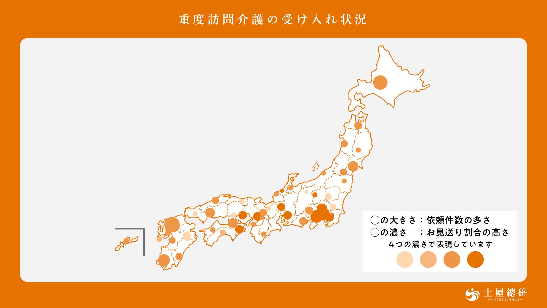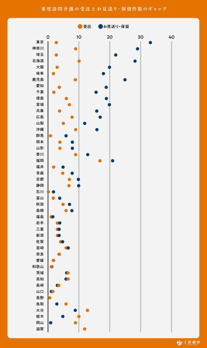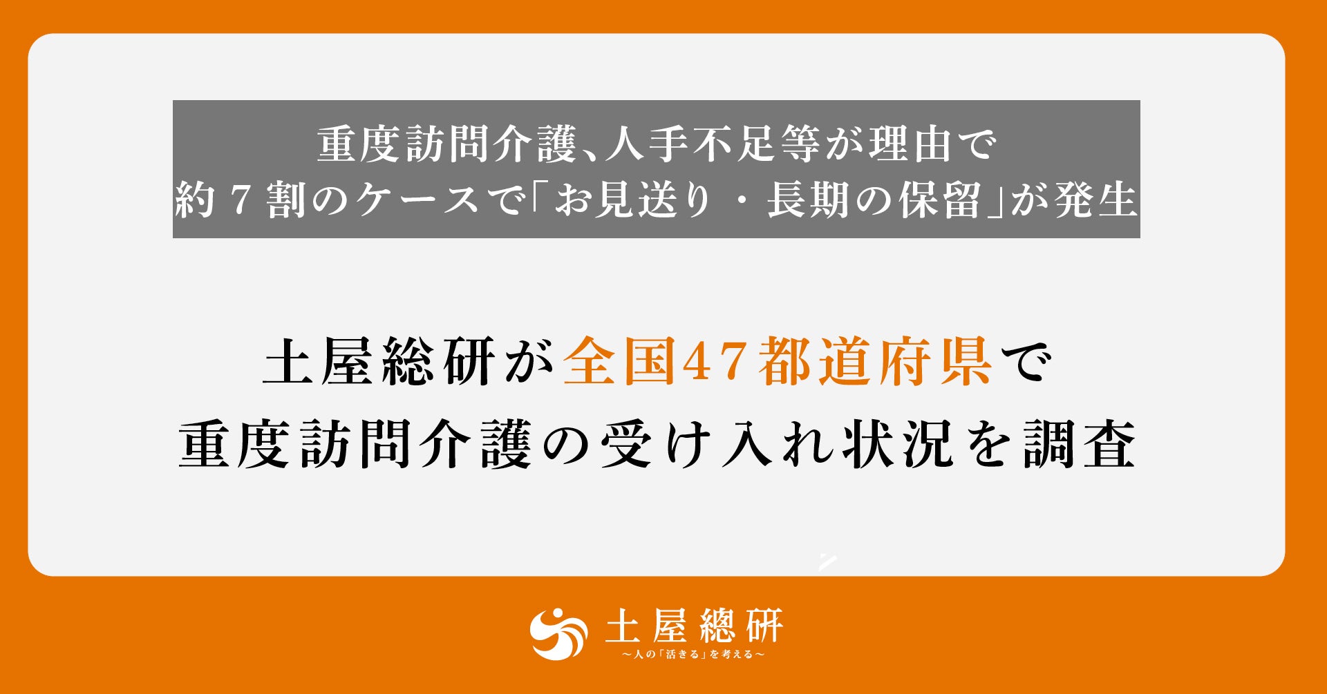 障害者介護を中心とした福祉の現場から、人の「活きる」を考える土屋総合研究所(所長:吉岡 理恵)は、土屋グループの『ホームケア土屋』に寄せられた重度訪問介護の依頼に関するデータを分析し、重度訪問介護の受け入れ状況を調査しました。
