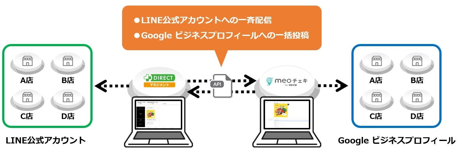トライハッチが提供しているGoogle ビジネスプロフィール管理・分析ツール「MEOチェキ」と 「+DIRECT」をシステム連携を行うことで、店舗・企業の最新情報の発信を強化し、新規ユーザーの獲得からリピート獲得まで一気通貫での支援が可能となります。