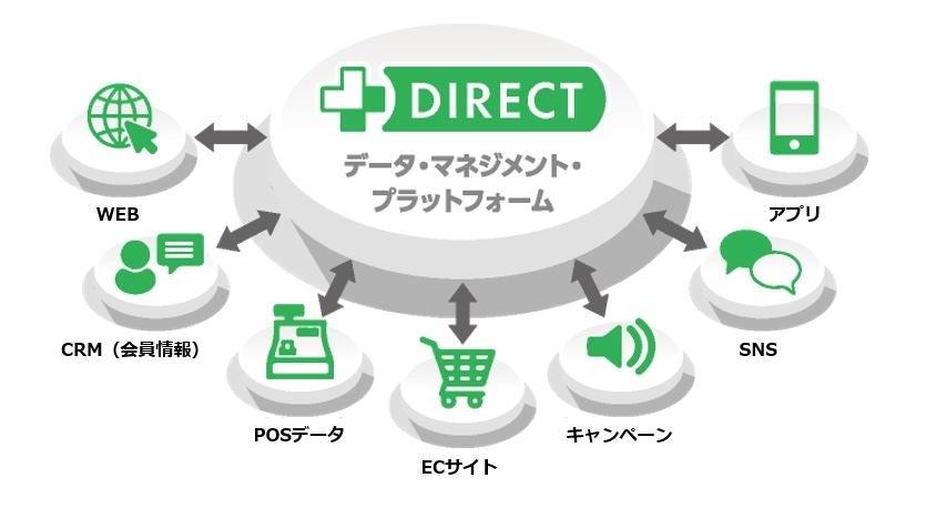 「+DIRECT」は、企業や店舗のLINE公式アカウントをはじめとしたSNS販促を最大限に活用するデータマネジメントプラットフォームとして、 既存顧客データベースとの連携や高度なセグメント配信、LINE のユーザーIDの取得によるCRMシステムの構築など、マーケティングで生じる様々な課題を解決できるサービスです。