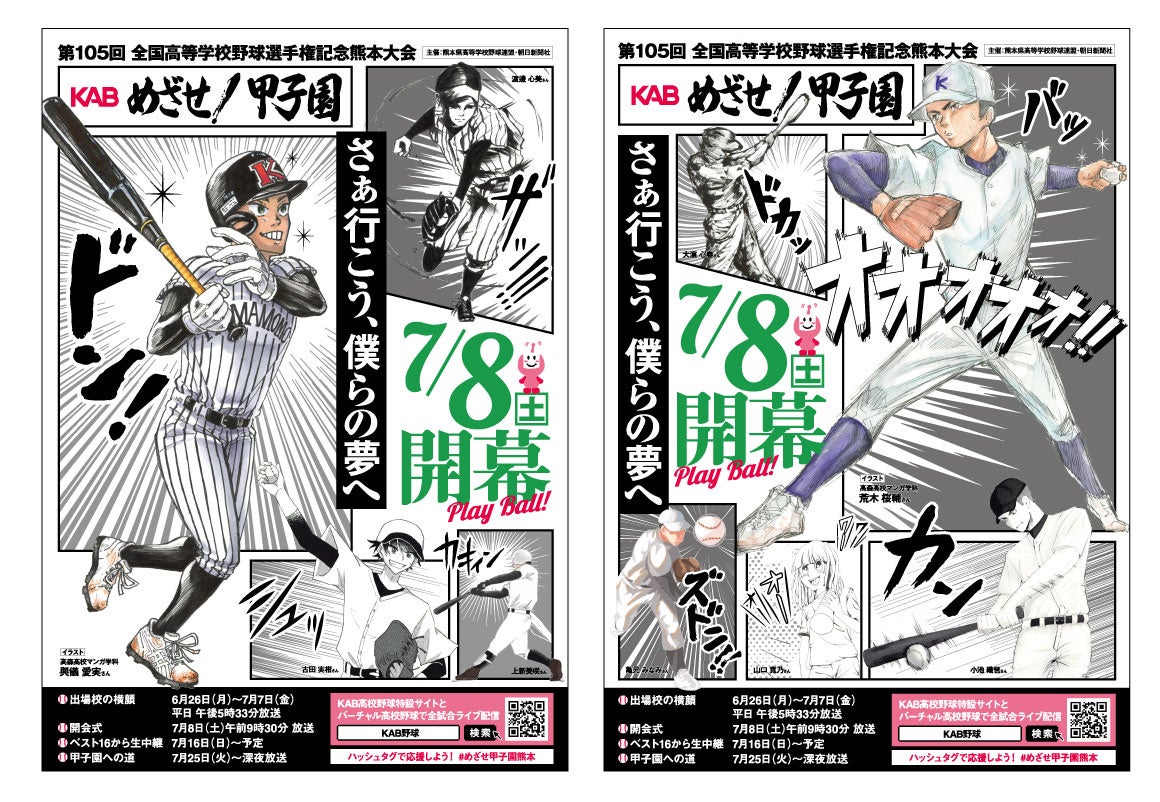 KAB熊本朝日放送では、夏の高校野球大会を中継する番組「めざせ!甲子園」のメインビジュアルとして、熊本県立高森高等学校マンガ学科の生徒のイラストを採用いたしました。