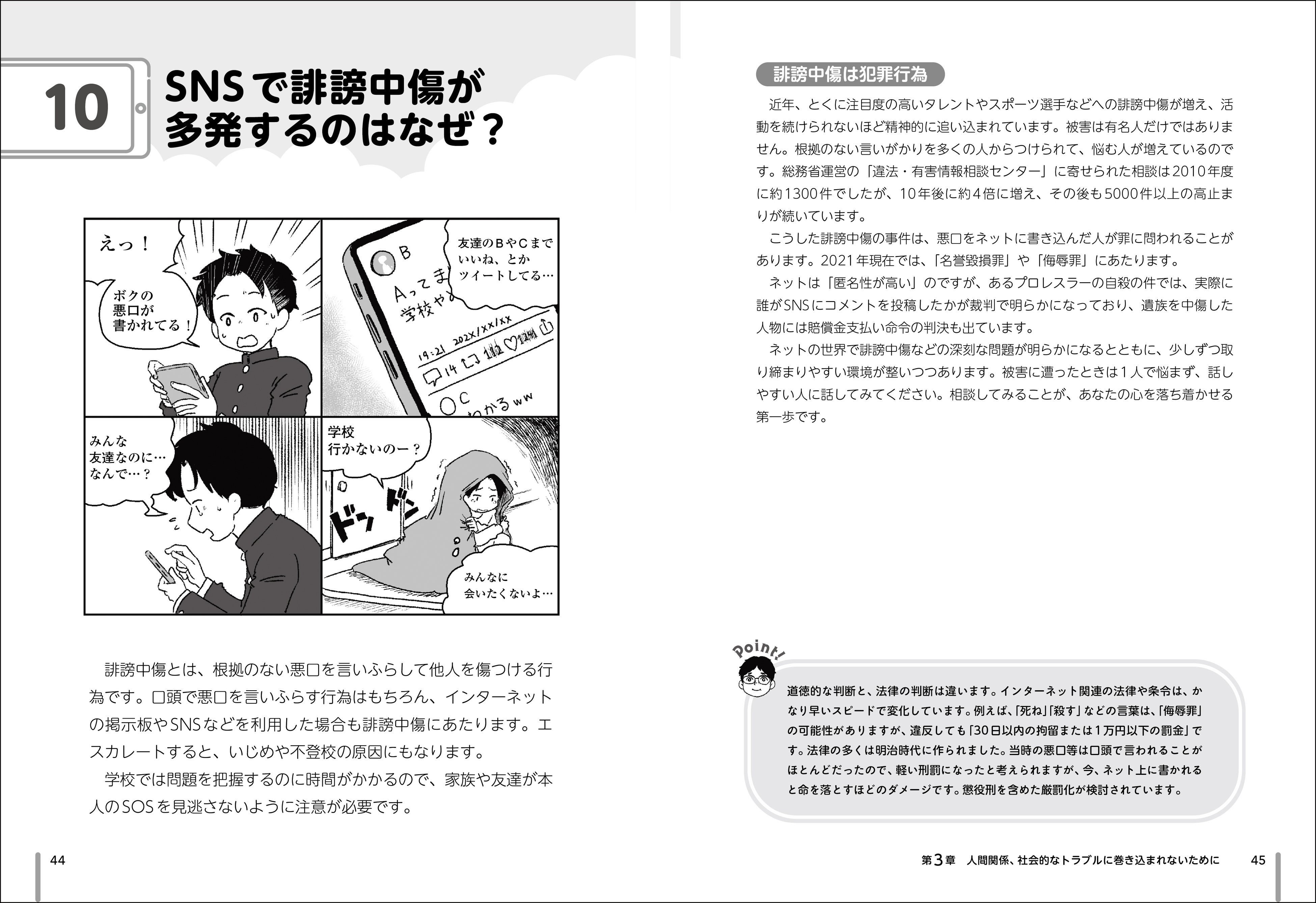 - SNSでの誹謗中傷についてイラスト付きで詳しく解説されています。