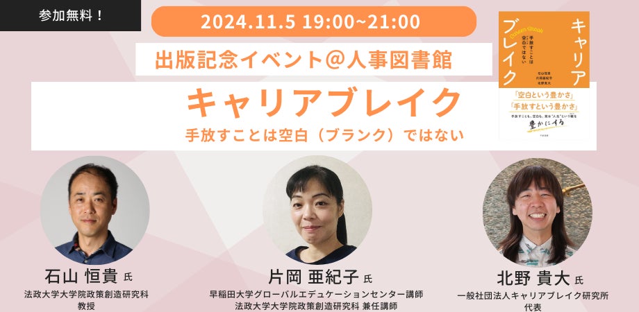 【著者来館!】『キャリアブレイク — 手放すことは空白(ブランク)ではない』出版記念イベント開催!≪11月5日(火)19:00~@人事図書館≫