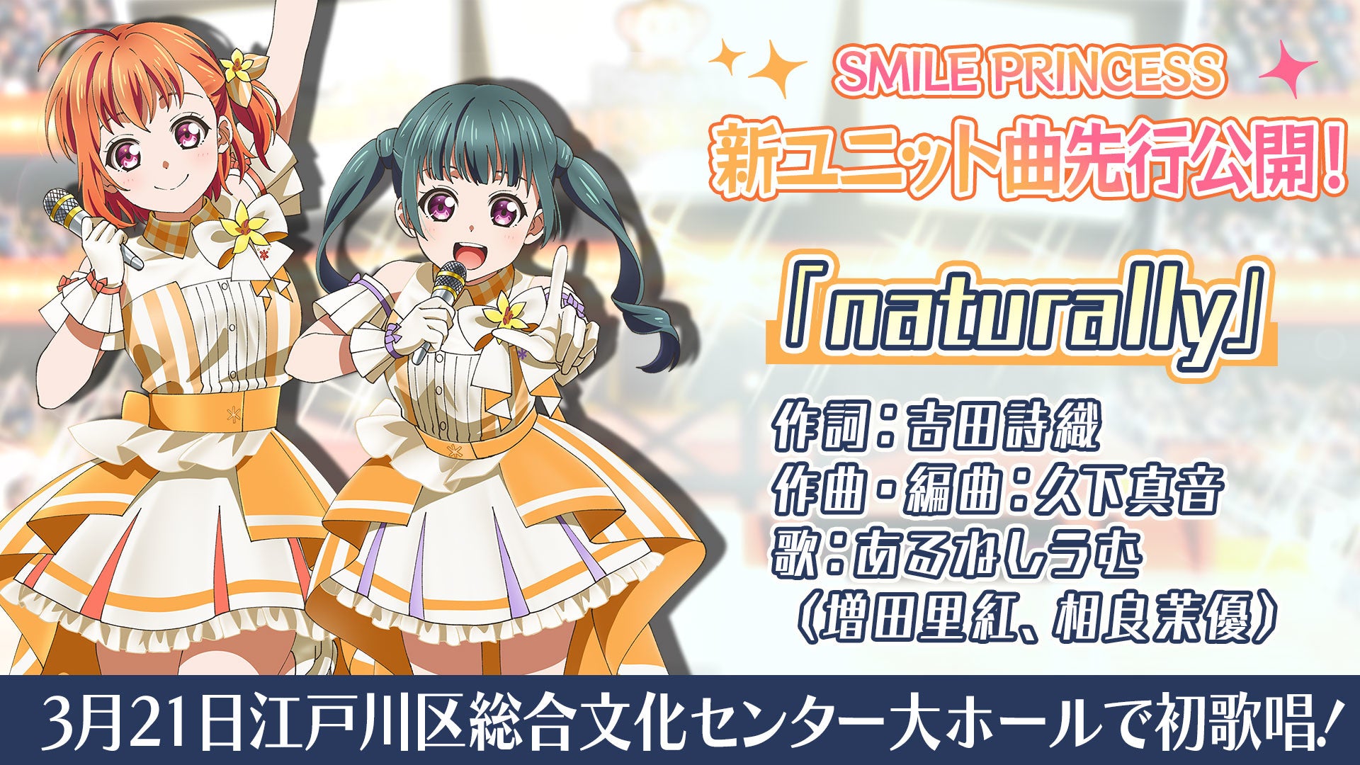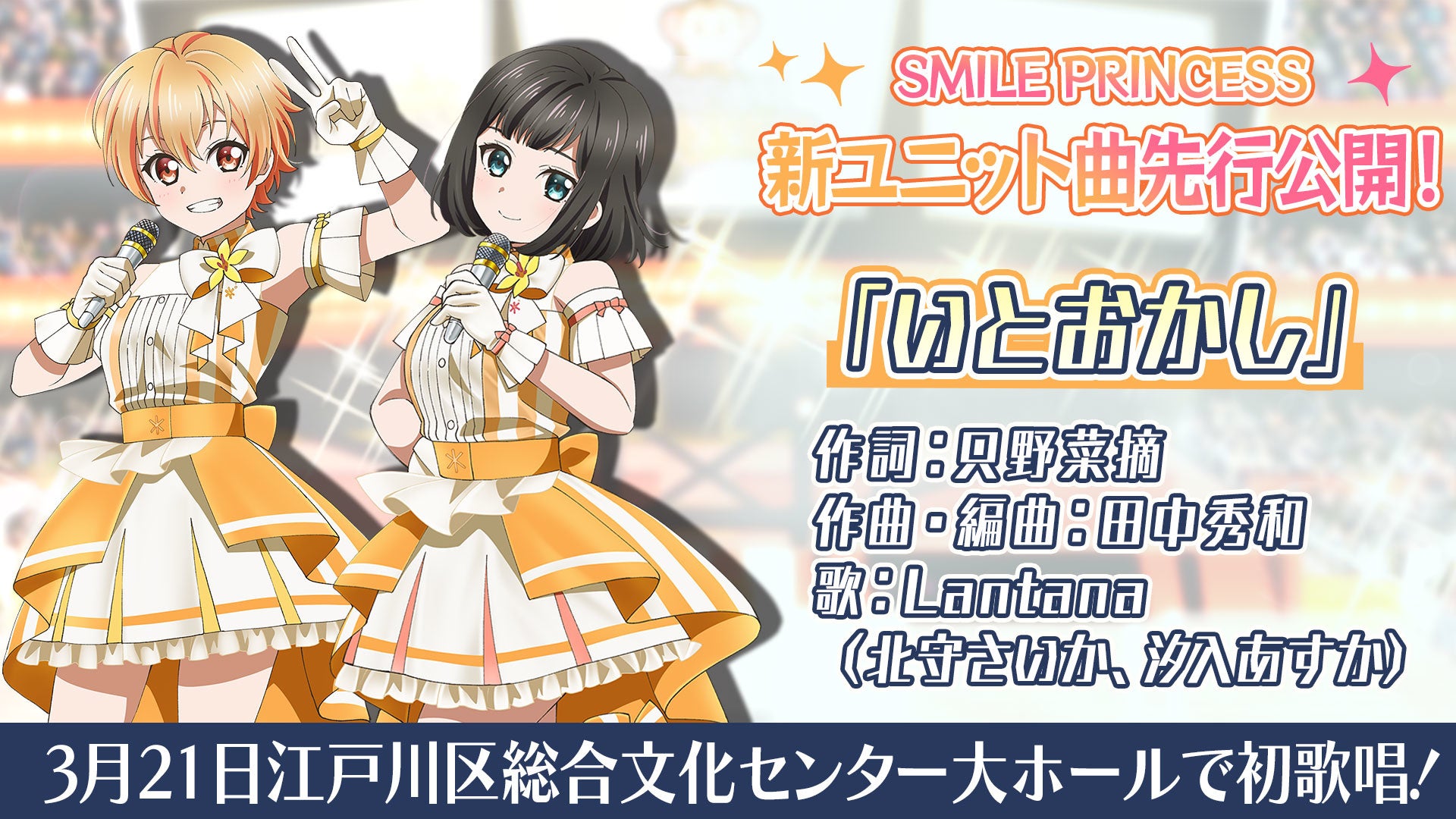 昨年11月24日(水)配信の公式YouTube「SMILE PRINCESS byプラオレ!」生放送にて、3月21日(月・祝)開催の1stLIVEに向けて盛り上げていくために、ファン参加型の企画として、7名によって結成された声優ユニット「SMILE PRINCESS」の中から新たに3ユニット「あるねしうむ」「Lantana」「Eyeslink」が誕生しました。