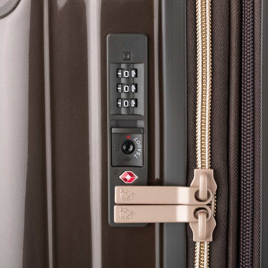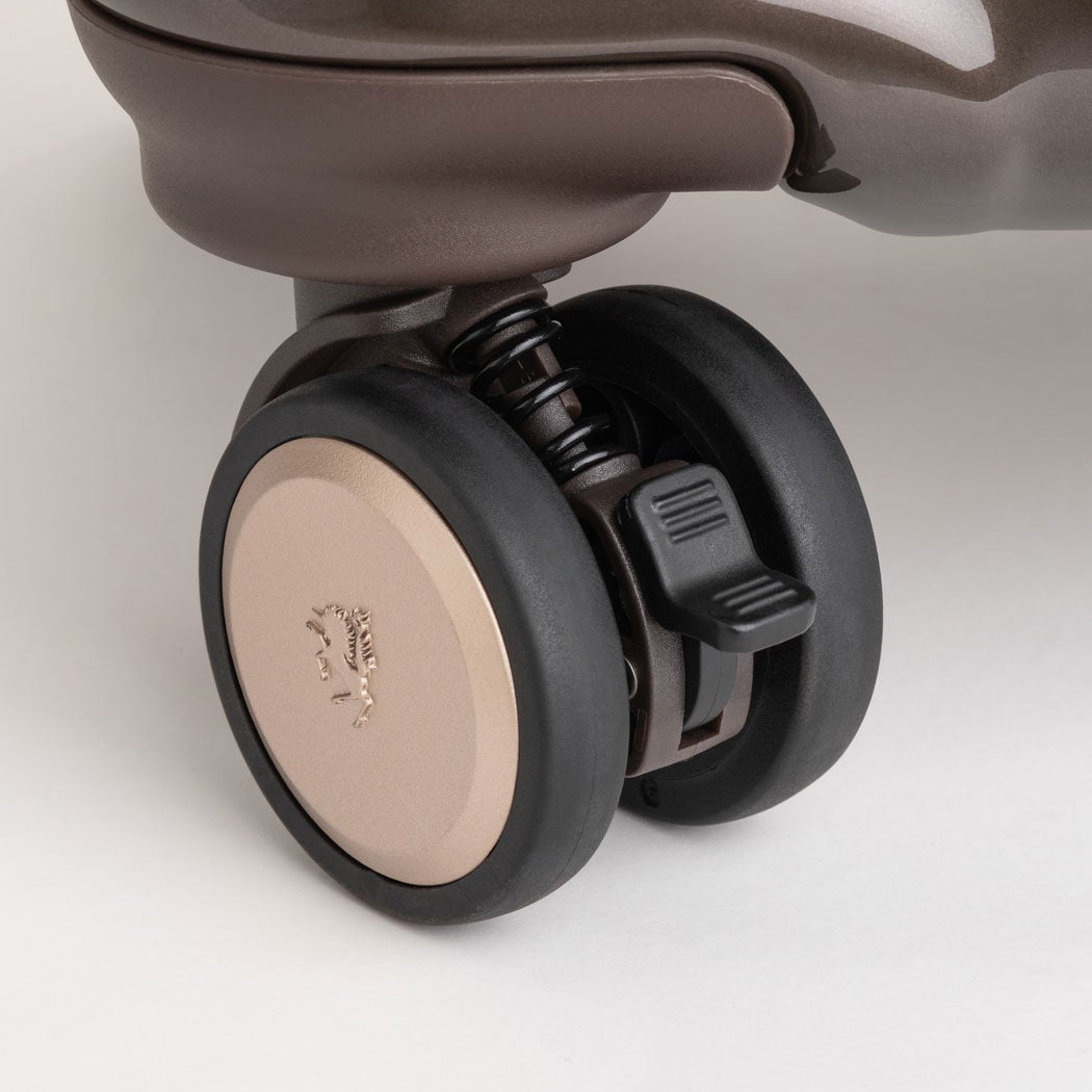 機能面では、ボディにポリカーボネートとABS樹脂を組み合わせた素材を採用し、軽さと強度のバランスを両立。ファスナー操作でマチ幅が約5cm広がる容量拡張機能により、旅程に合わせて収納量を調整できます。さらに、足踏みで操作できるストッパー付クッションキャスターを装備しているため、公共交通機関や傾斜のある場所でもスーツケースをしっかり固定。高さを細かく調節できる多段階キャリーバーや、濡れた折り畳み傘も収納可能な撥水ポケット付きの内装、ダイヤル式TSロックなど、使い勝手を高める快適機能を幅広く搭載しています。