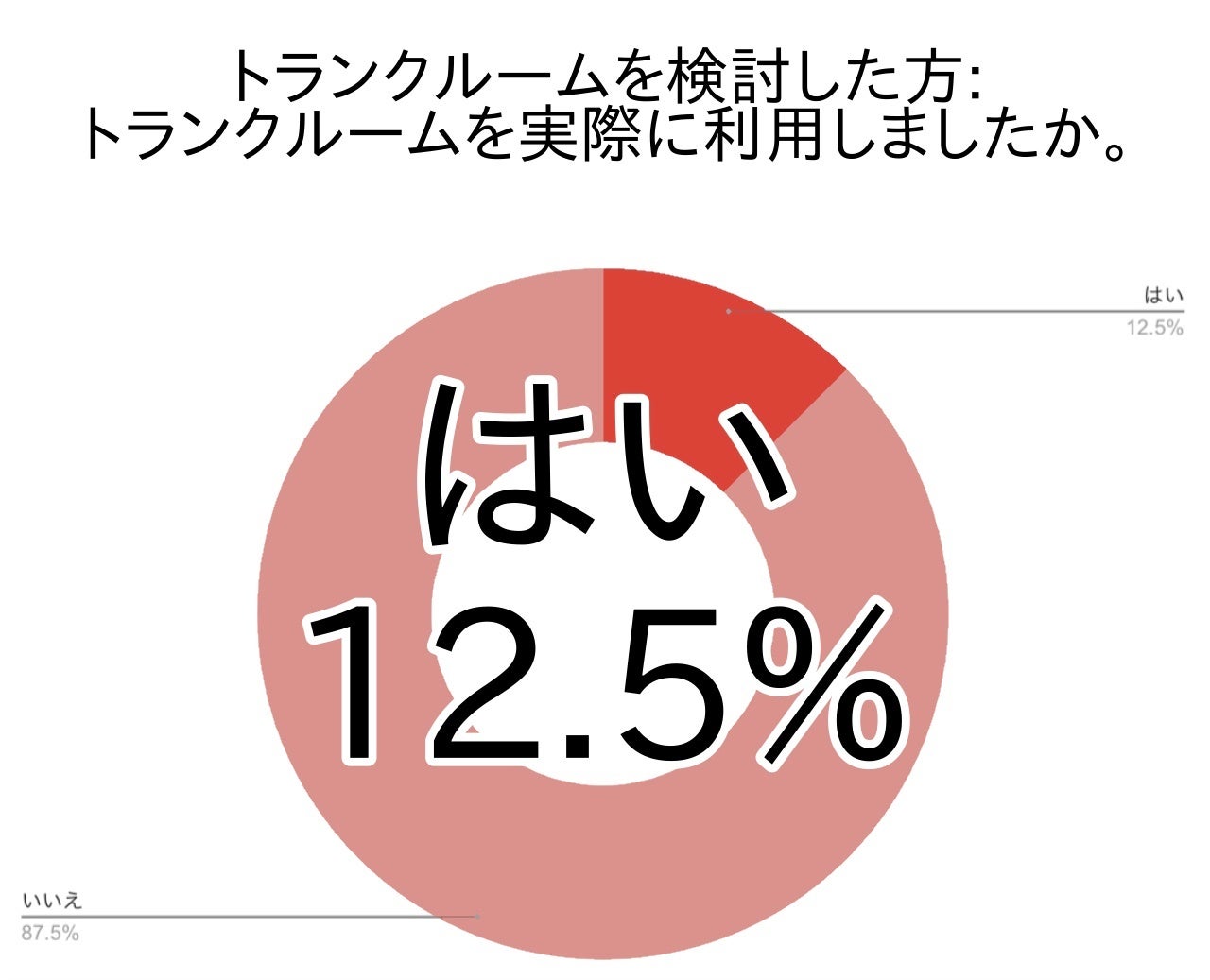 最後に、トランクルームの利用を検討した方を対象に、トランクルームを実際に利用したかどうかを尋ねてみました。