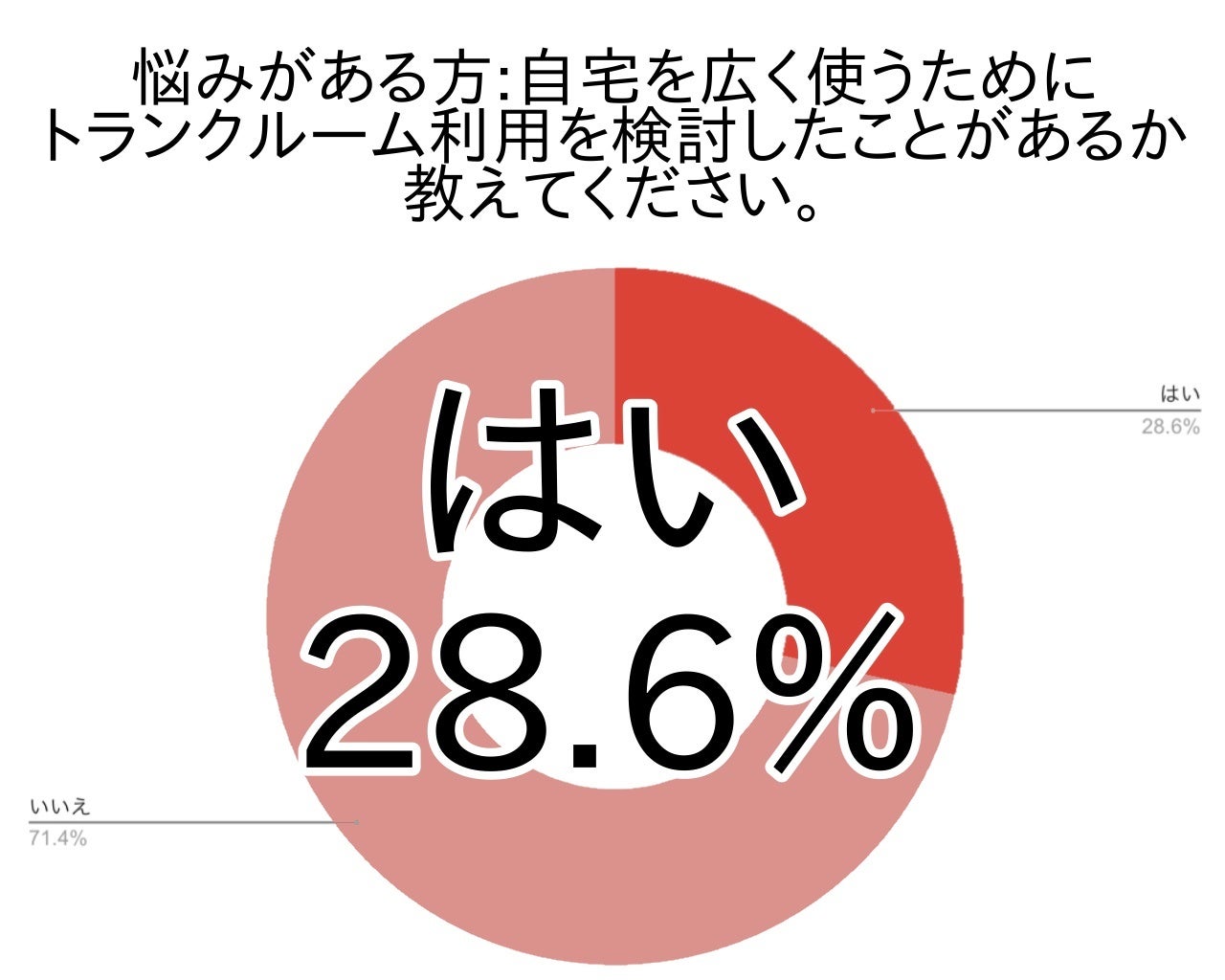 アンケートで収納の悩みがあると答えた方に、自宅を広く使うためにトランクルーム利用を検討したことがあるかを尋ねました。