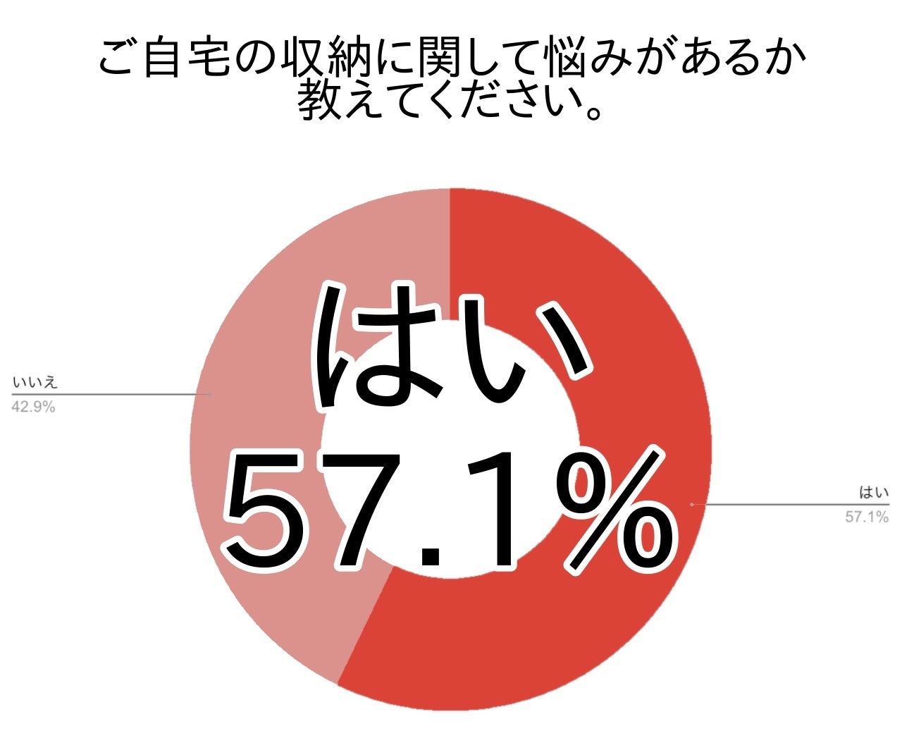 アンケートでは次に、自宅の収納スペースに関して悩みがあるかを尋ねました。