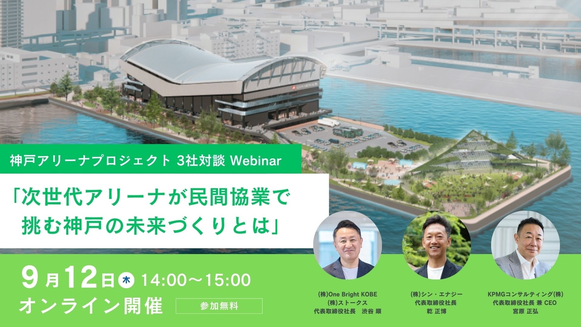また、同発表を記念して、9月12日Webinar「次世代アリーナが民間協業で挑む神戸の未来づくりとは」を開催。次世代アリーナを基点に民間協業で取り組む、地域・社会課題解決型アクションついてディスカッションを行います。
