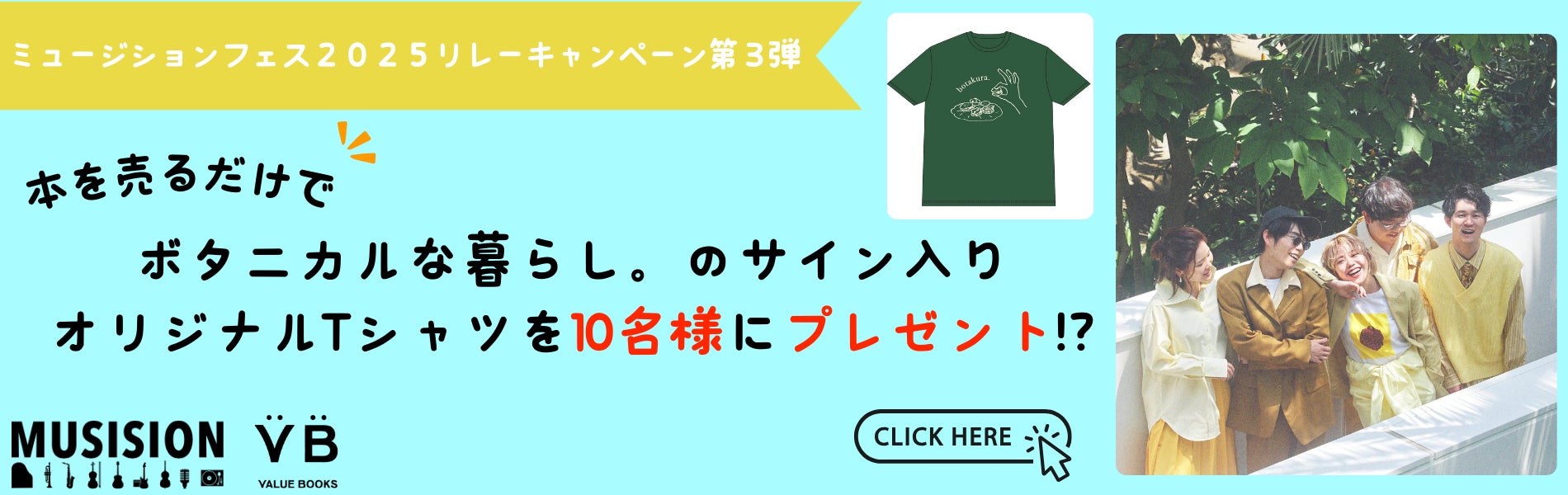 お手持ちの本をバリューブックスに送るだけで、抽選で10名様にボタニカルな暮らし。のサインが入ったオリジナルTシャツをプレゼントします。