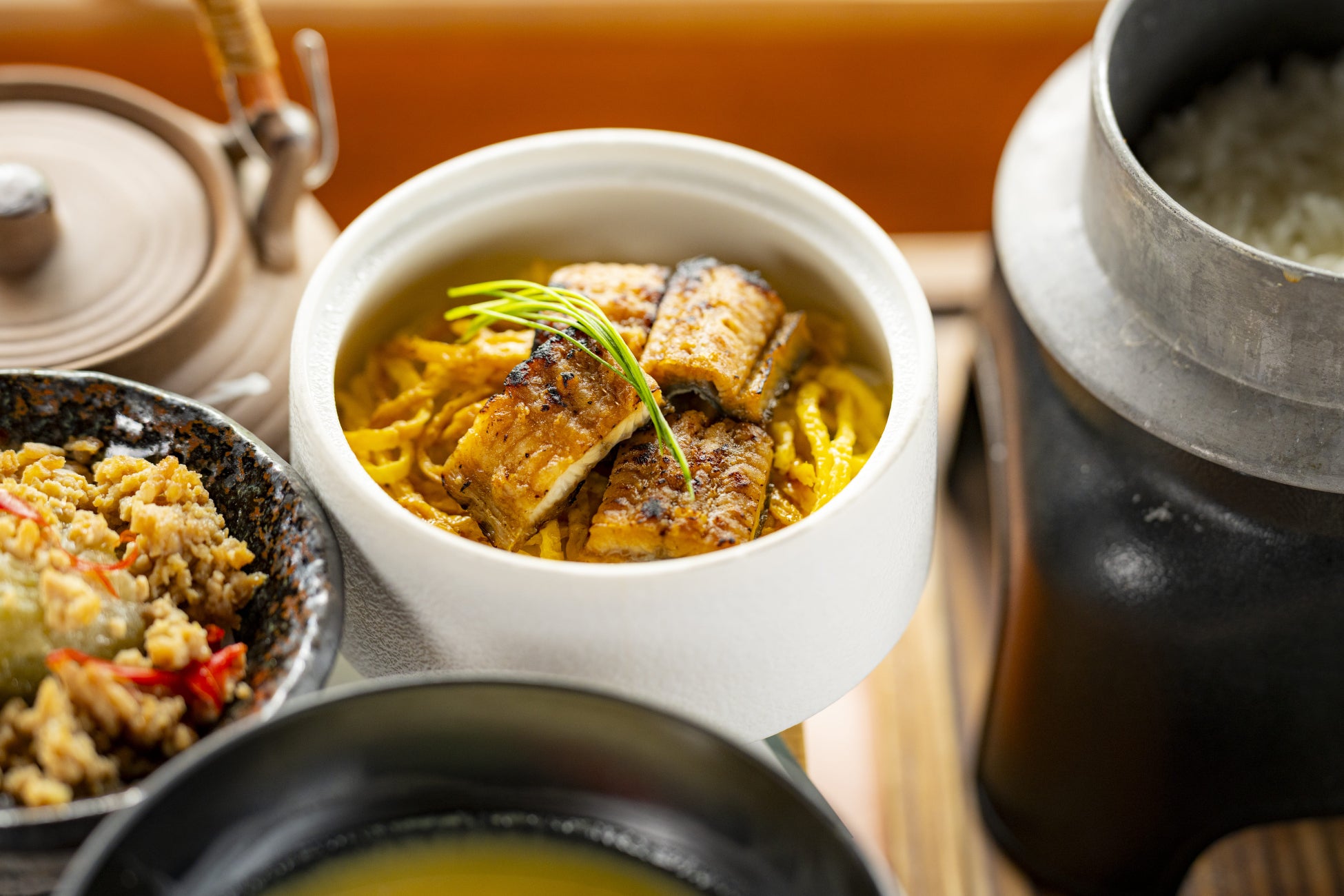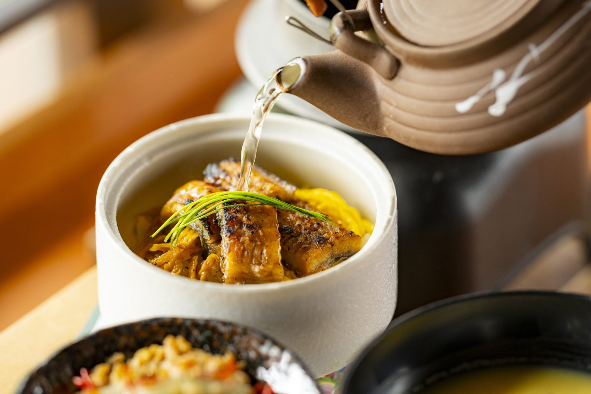 香ばしく焼いた鰻を、甘めのたれとともに出汁茶漬けに仕立てました。