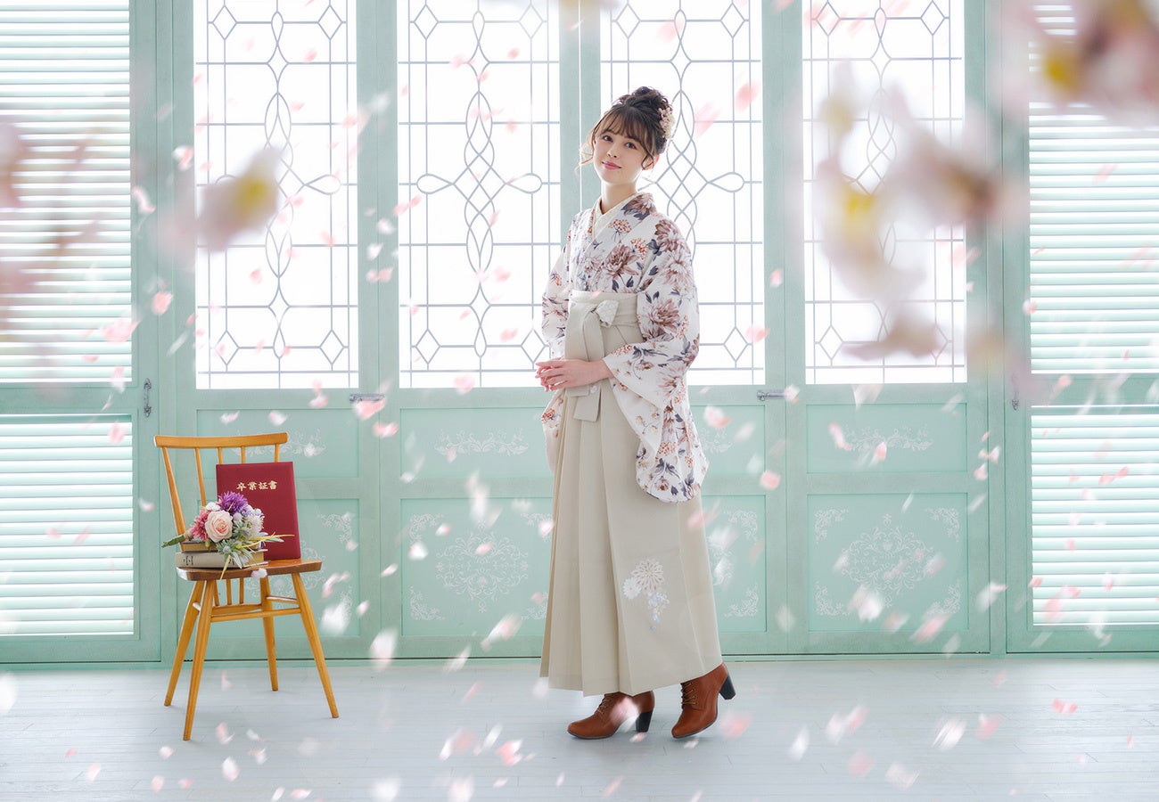 卒業・入学式当日に桜と一緒に撮影できなくても、スタジオ撮影した写真に舞い散る桜エフェクトを加えることで、今しか撮れないシチュエーションの特別な写真に仕上がります。