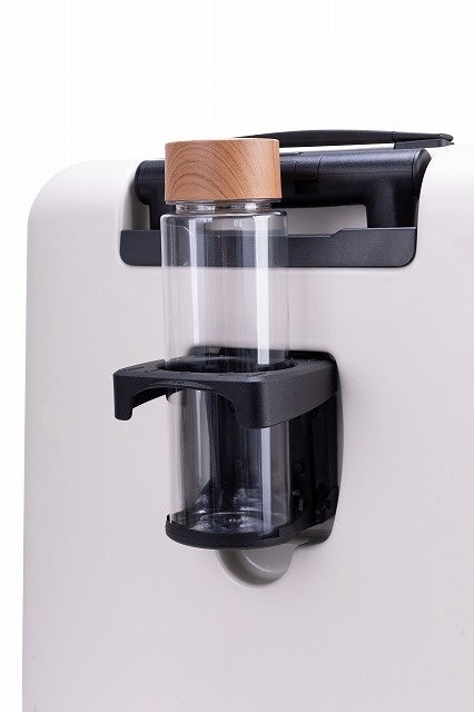 本体背面に水筒やテイクアウトをした際のカップを手軽に置ける、便利なドリンクホルダーを採用。