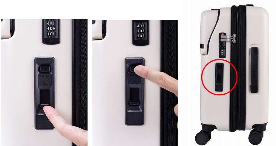 ビジネス、観光、出張、旅行、その他あらゆるスーツケース使用時に、ワンタッチで開閉することができます。指1本の簡操作で、トップ部分の開閉が1秒で可能。本体収納部分へのスムーズなアクセスを可能にしました。