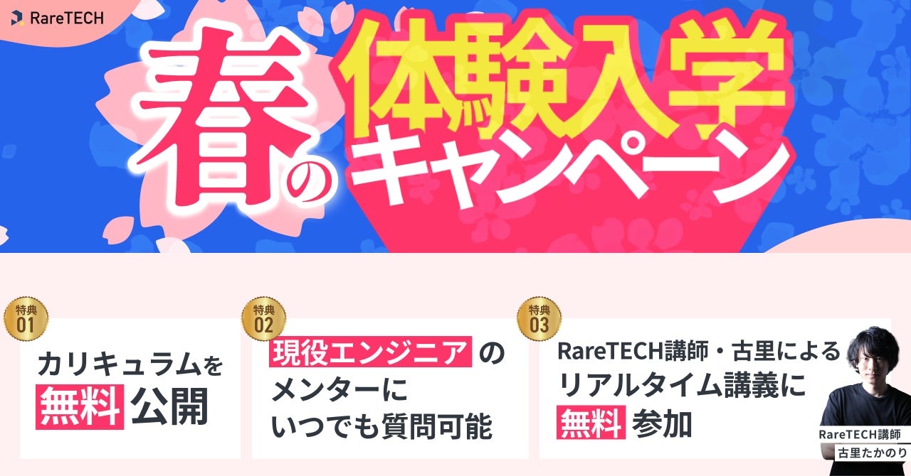 株式会社var(所在地:東京都品川区、代表取締役:古里栄識)が運営するITスクール「RareTECH(レアテック)」は、2026年4月10日(金)より「春の体験入学キャンペーン」を実施します。