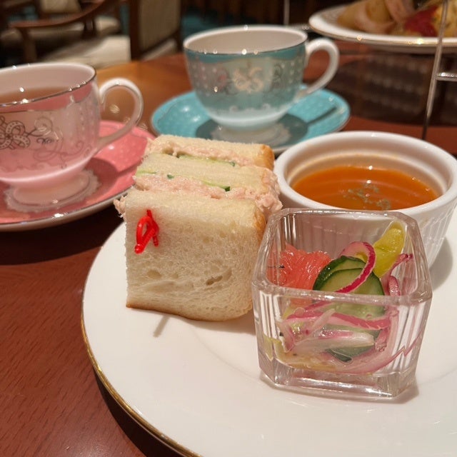 《 ツナとキュウリのサンドウィッチ・ミネストローネ・4種の野菜マリネ》