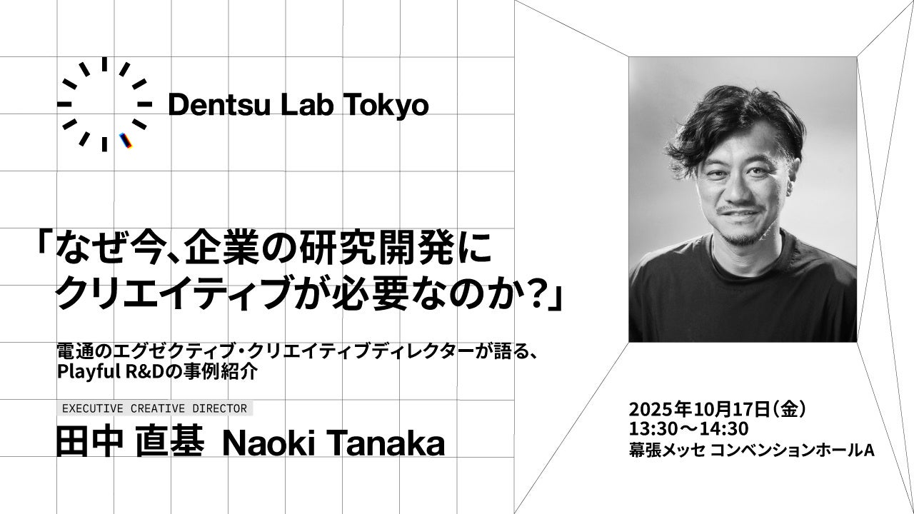 また、2025年10月17日(金)には、Dentsu Lab・Executive Creative Directorの田中直基と、Dentsu Lab Tokyo・Communication Plannerの後藤萌、Creative Technologistの村上晋太郎の3名によるセッション「なぜ今、企業の研究開発にクリエイティブが必要なのか?」を開催します。