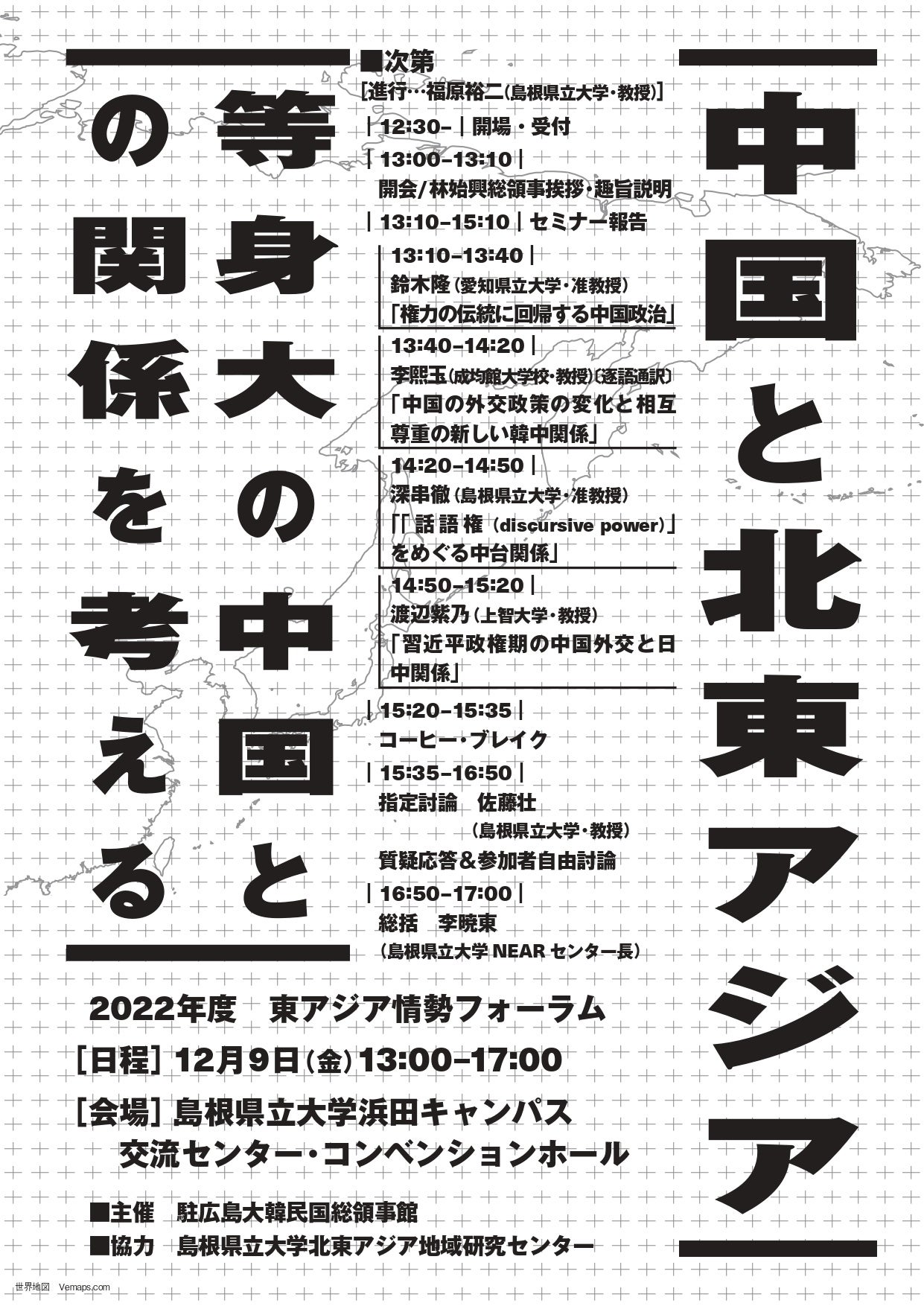 『2022年度 東アジア情勢フォーラム』を12月9日(金)に開催します【島根県立大学】