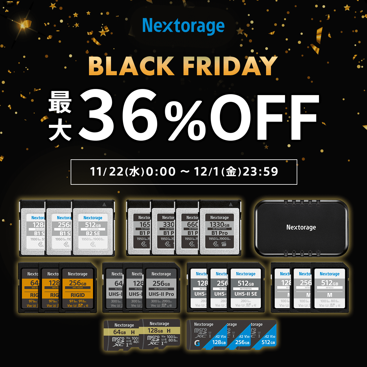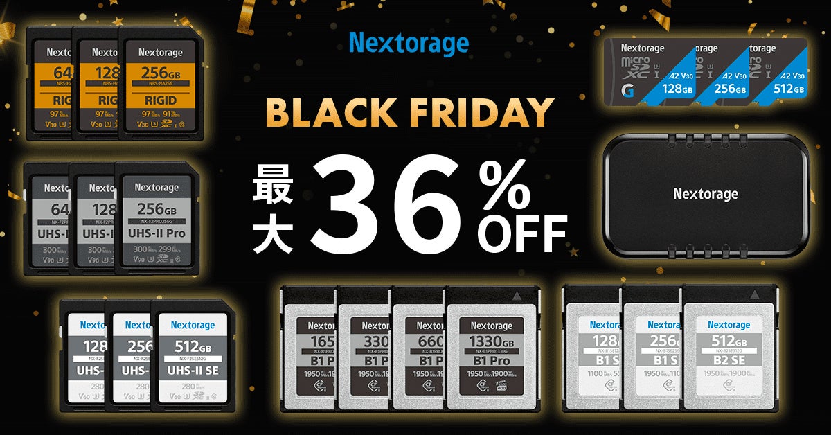 [Nextorageセール情報] Amazon ブラックフライデー参加のお知らせ CFexpress Type B 512GBが過去最安値の\19,800などイメージング製品を最大36%OFFで販売