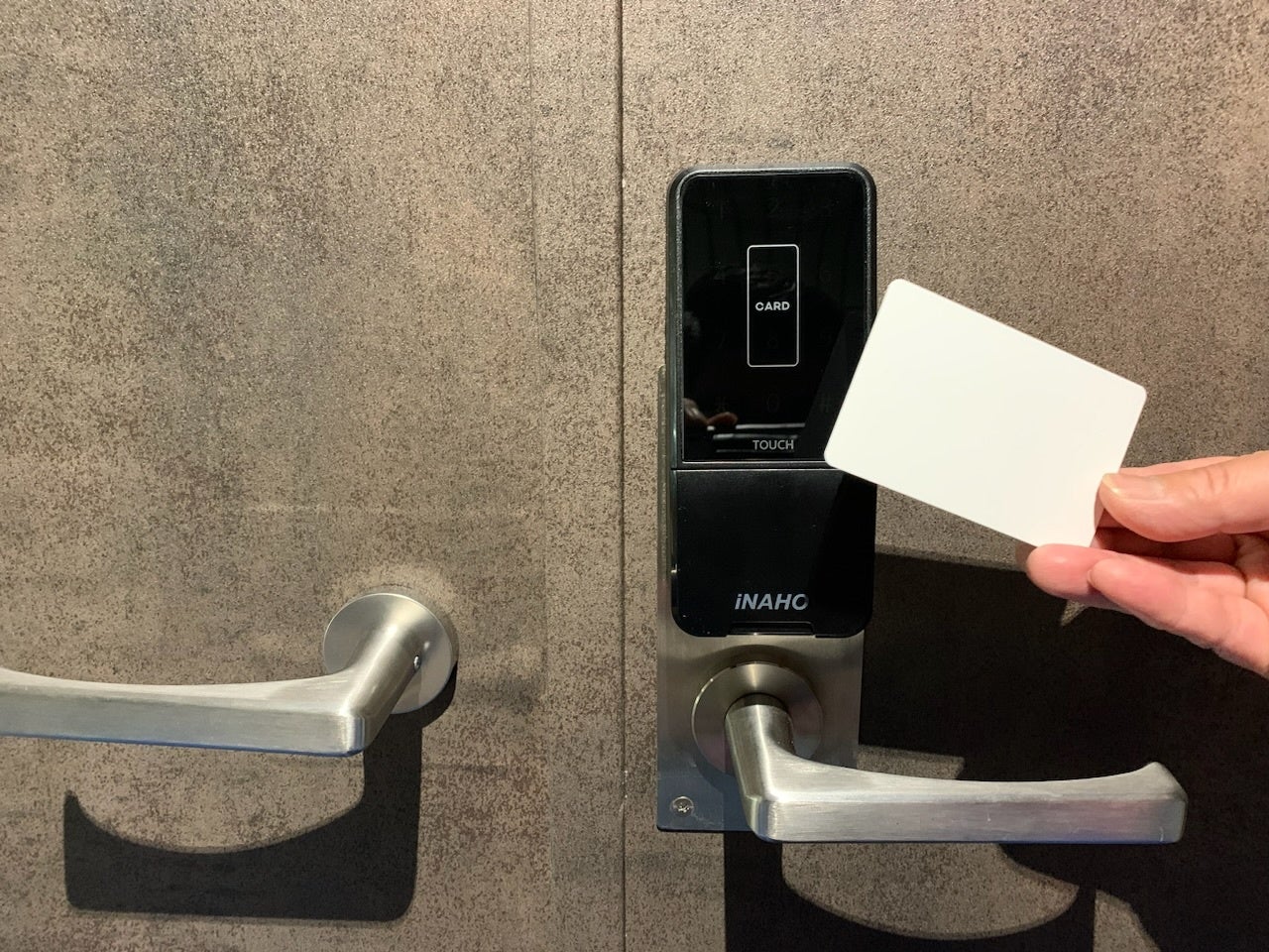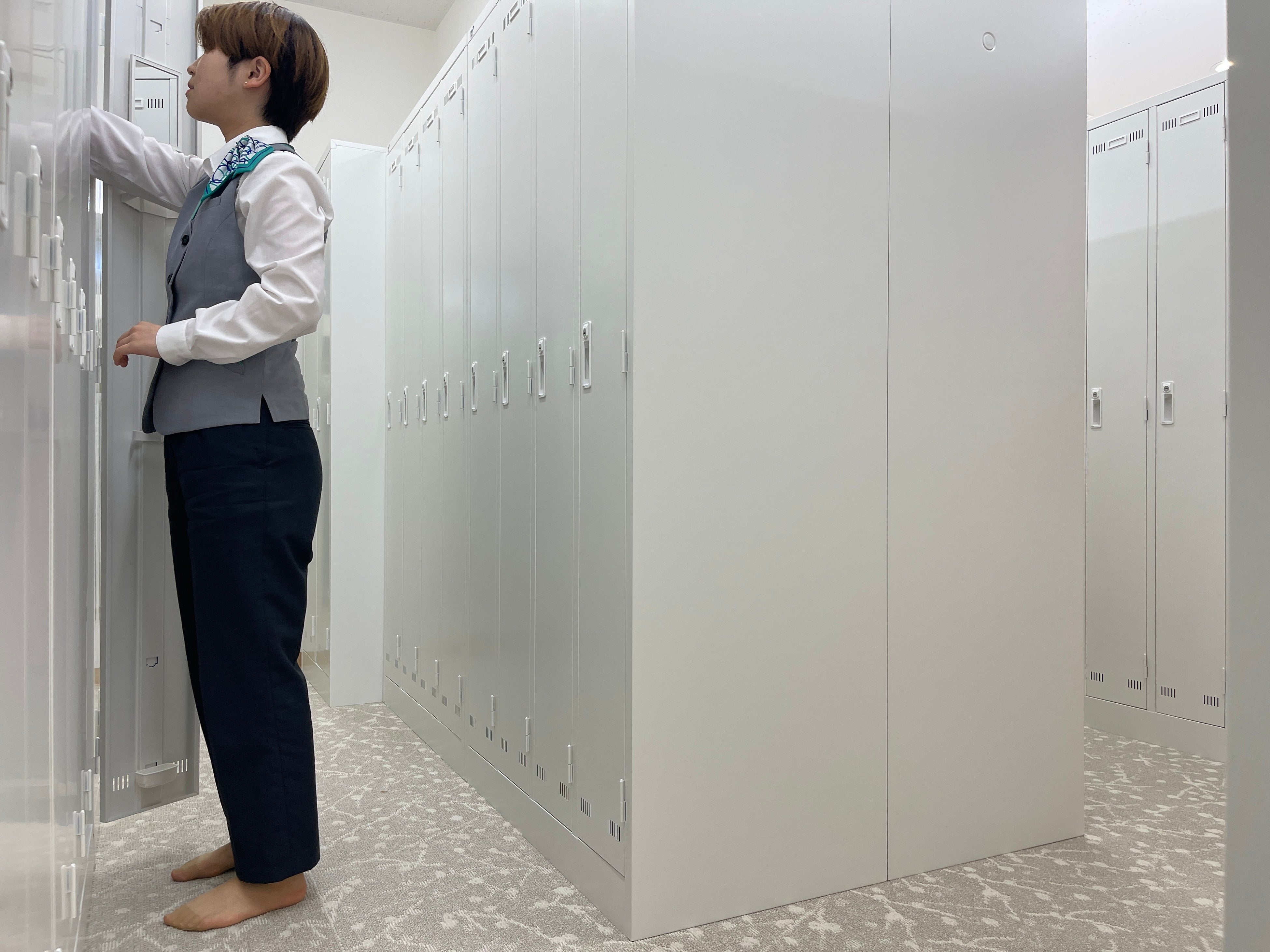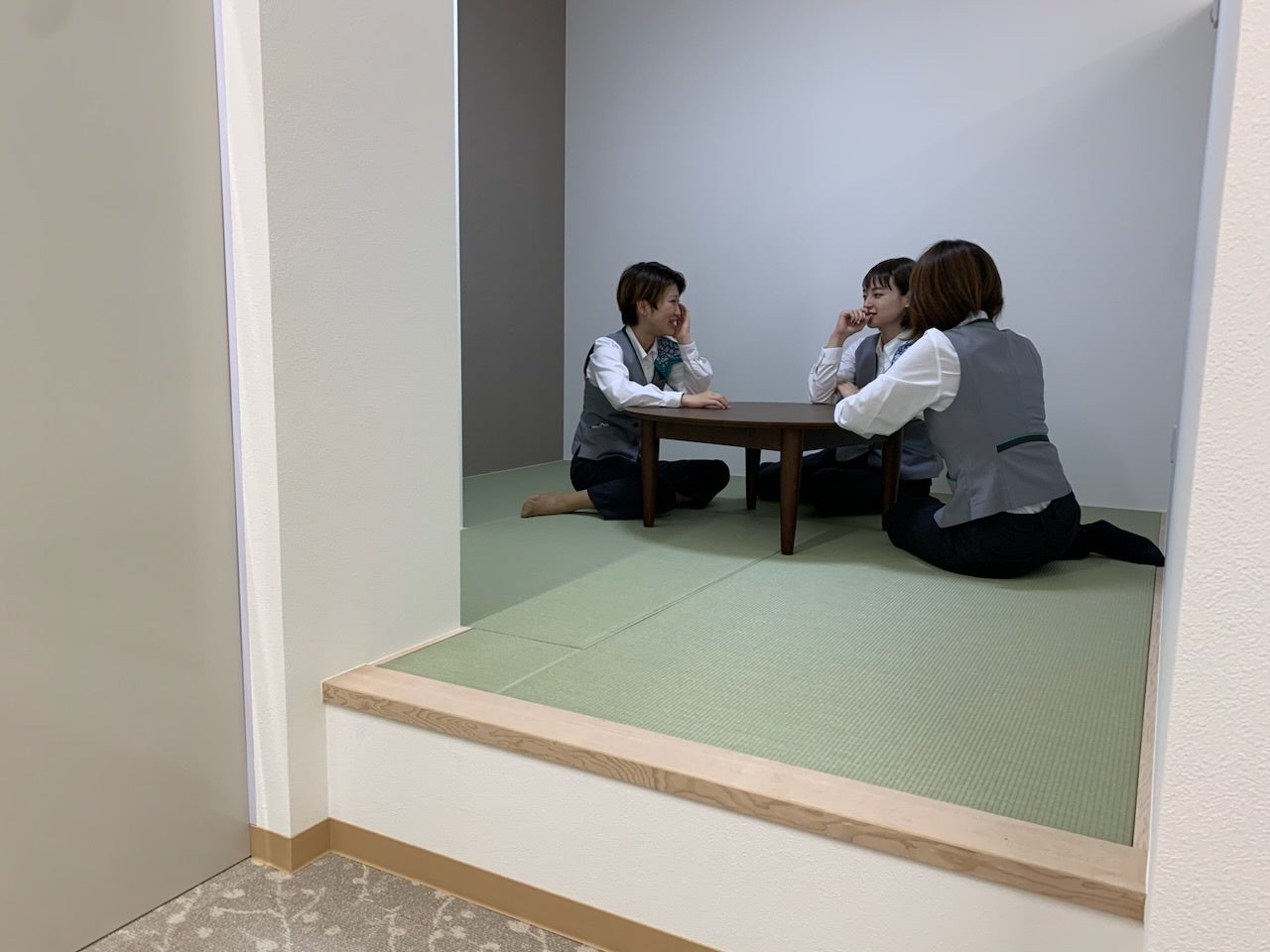 新設した休憩室には、畳敷きのリラックスできる和室の他、シャワールームや大きな鏡を配置したパウダールームを併設。業務前後や中休憩の際に、複数人でもゆったり使用できる休憩室としました。さらに、セキュリティ面ではオートロック機能付きのカードキーによる施錠を採用したほか、室内に緊急ボタンを配備し、異常時には24時間在籍している営業基地の管理者に通知することができます。また、出入口は1つだけなので、外部からの侵入や視界を気にすることなく安心して休憩できるスペースとなっています。