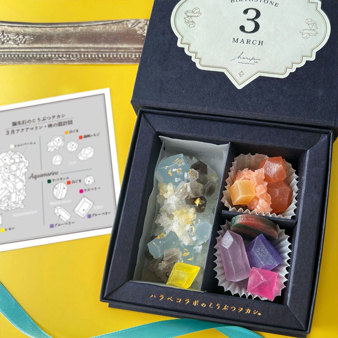 2月26日より発売!鉱物みたいな琥珀糖【3月のこうぶつヲカシ -誕生石Aquamarine-】も登場!