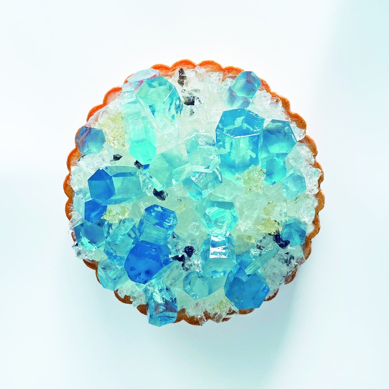 3月は、透明感が神々しい水色が特徴の鉱物【アクアマリン】をソーダ味のこうぶつヲカシで立体的にあしらい、まるで本物の鉱物のように仕上げました。