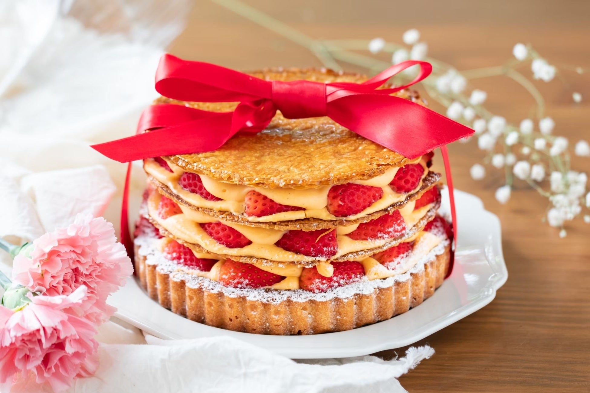 今年の母の日タルトは、旬のいちごを贅沢に使用した「いちごのミルフィーユタルト」