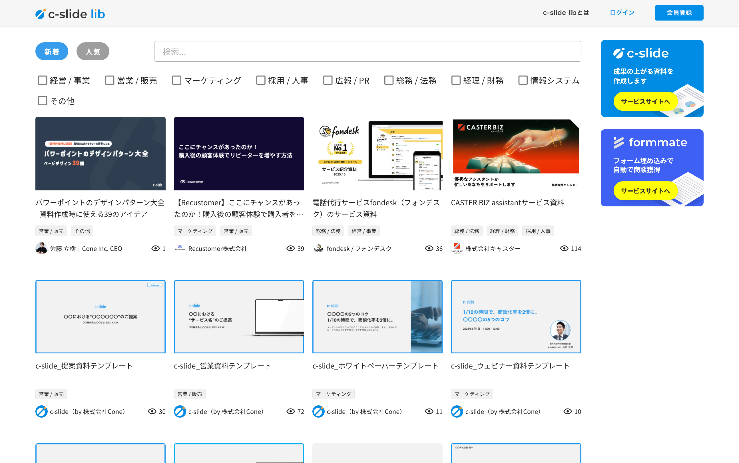 資料作成代行サービスc-slideが運営するスライドシェアサービスです。PDFファイルをアップロードしてURLで共有することができます。