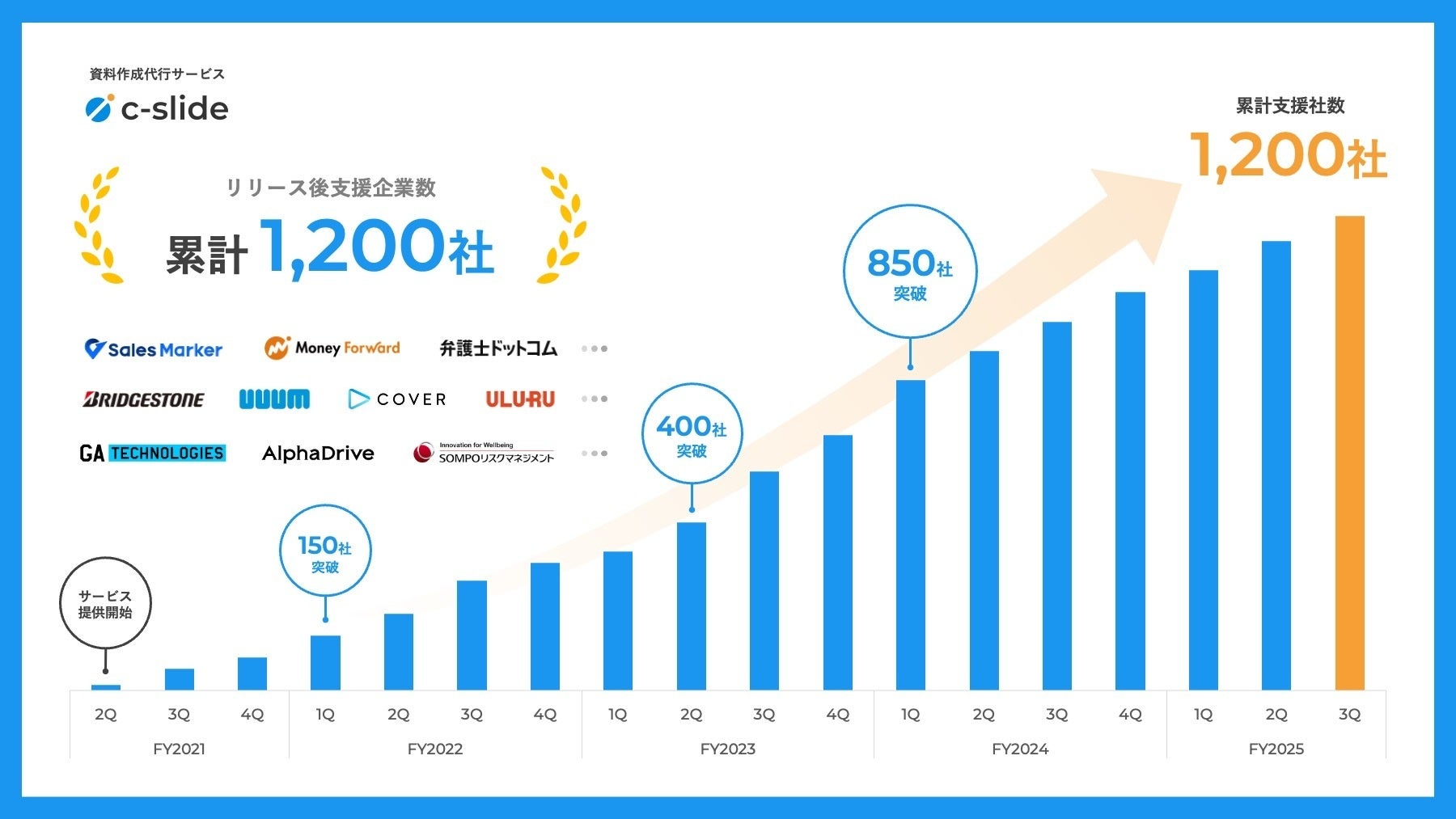 2021年5月からサービス提供を開始し、オプション料金なしで最短2日のスピード納品を維持しながら、ノウハウや改善資料の結果を蓄積し続け、お客様に「納品スピード」と「成果向上」をご評価いただき、支援企業数が1,200社を突破しました。