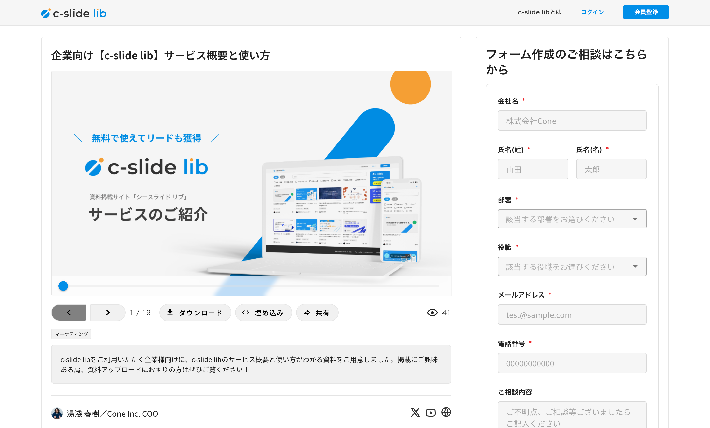 c-slideが「スライドの横にフォームが埋め込める」BtoB向けのスライド共有サービスをリリース