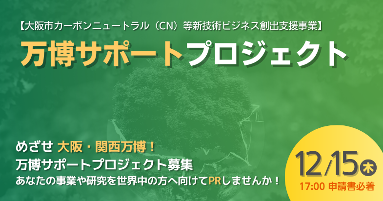 【カーボンニュートラル(CN)等新技術ビジネス創出支援事業】大阪・関西万博への出展をめざすスタートアップ企業、大学研究室(学生含む)の取り組みを募集