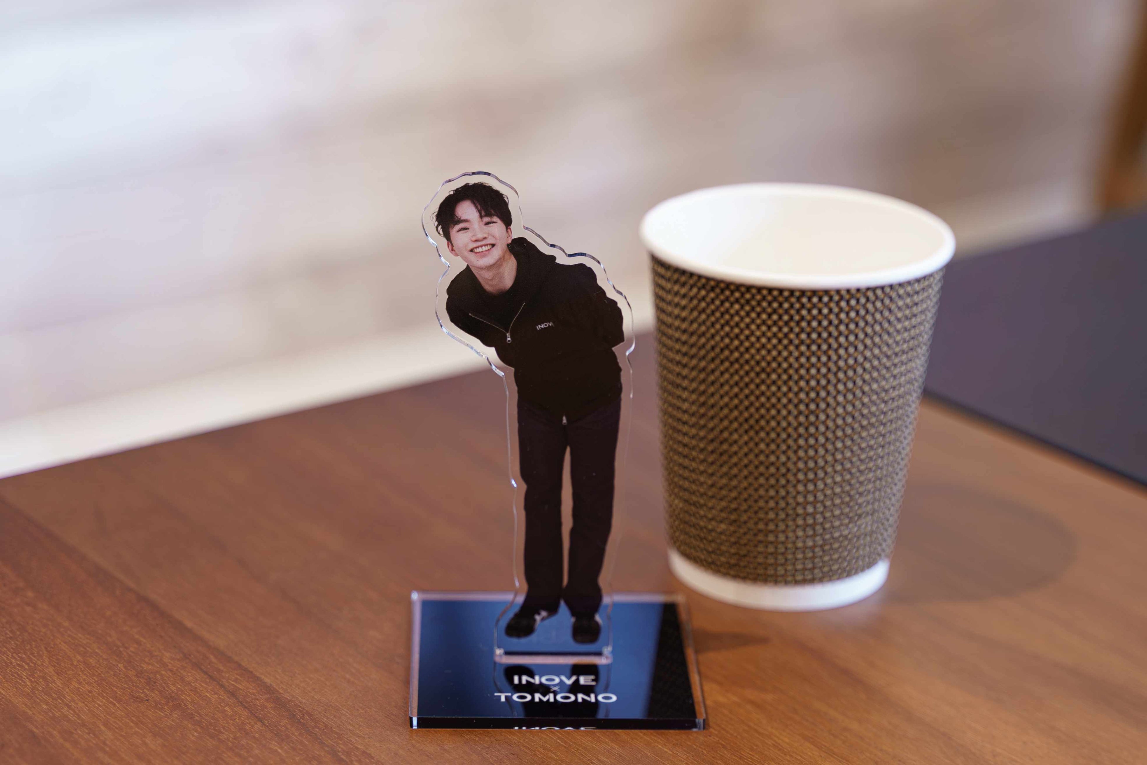 これまで、所属アスリートの友野一希選手が第一住建グループの事業所や店舗に訪れた際に、足跡として非売品のアクリルスタンド「INOVE友野くん」を設置。その様子を紹介したSNSのポスト等の反響が大きく、また、たくさんいただいた販売希望のリクエストに応える形で、このたびアクリルスタンド『MINI INOVE友野くん』の発売が決定しました。