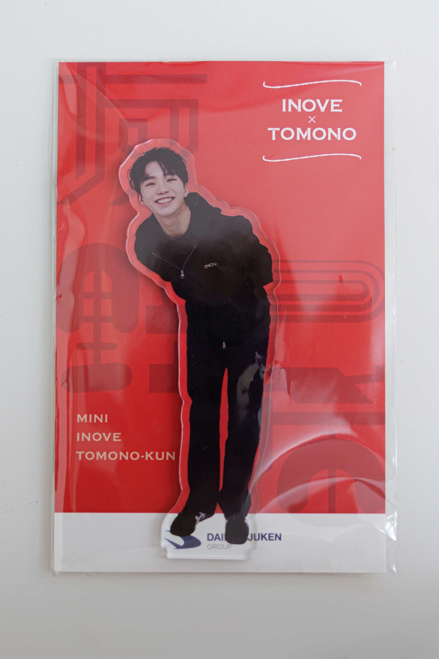 非売品のアクリルスタンド「INOVE友野くん」がビッグサイズ(約140mm)なことに対し、『MINI INOVE友野くん』は、非売品よりミニサイズの持ち運びにも便利な通常サイズ(約123mm)です。
