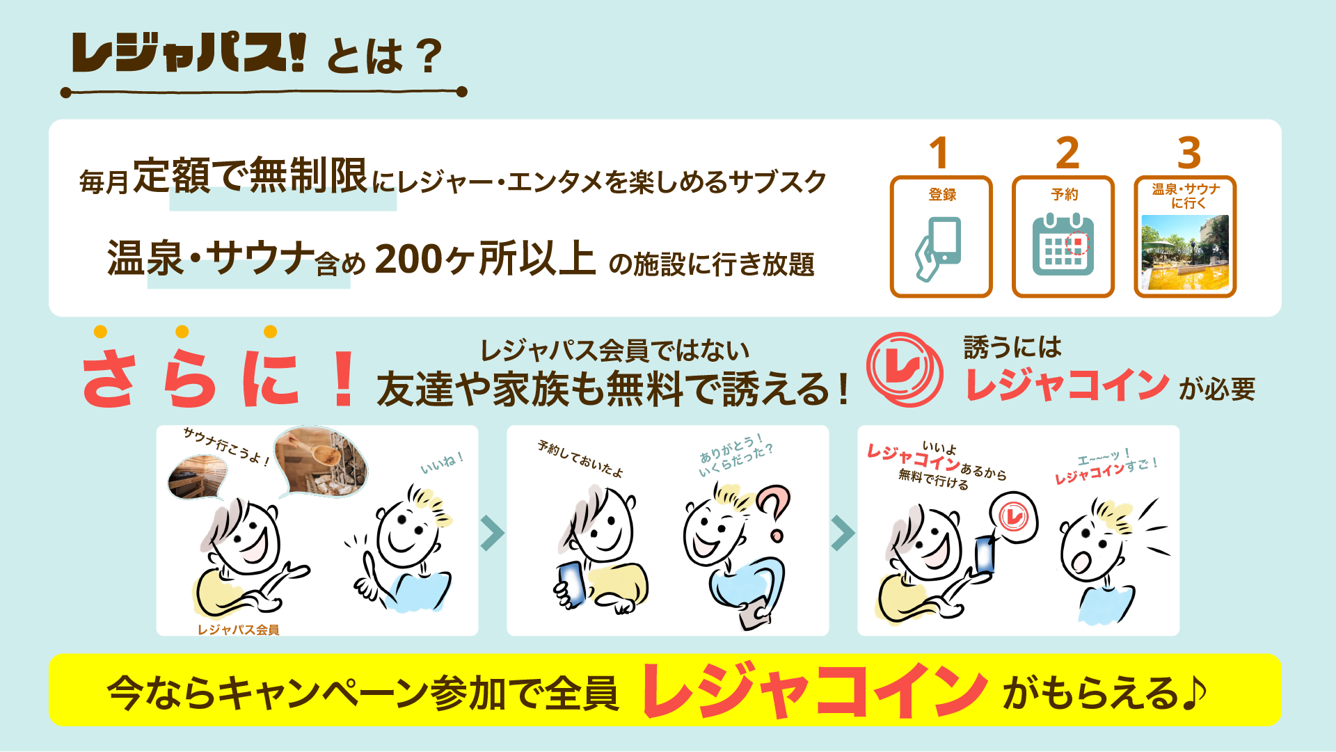 【内容】①キャンペーン参加でレジャコインプレゼント