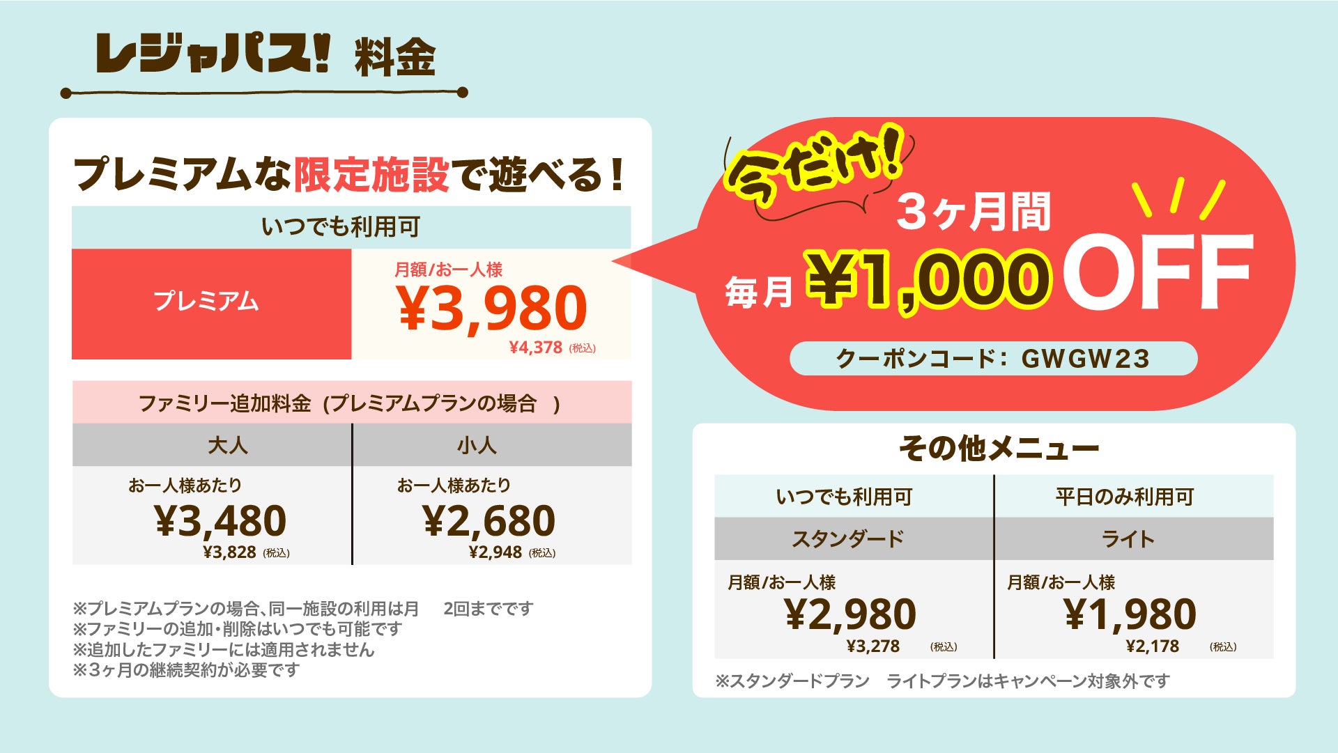 ②プレミアムプラン3ヶ月間毎月1000円OFFクーポン【GWGW23】
