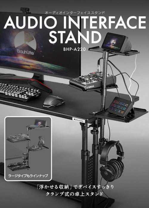 弊社ゲーミング家具ブランド「Bauhutte(R)(バウヒュッテ)」は2024年12月、デスクで手の届きやすい位置に複数のデバイスをセットできるタワー型スタンドのラージバージョン「オーディオインターフェーススタンドラージ BHP-A230」を発売いたします。