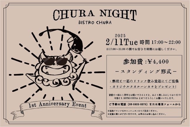 その記念として、2025年2月11日(火・祝)に日頃の感謝を込めて特別イベント『CHURA NIGHT(ちゅら ないと)』を開催します。