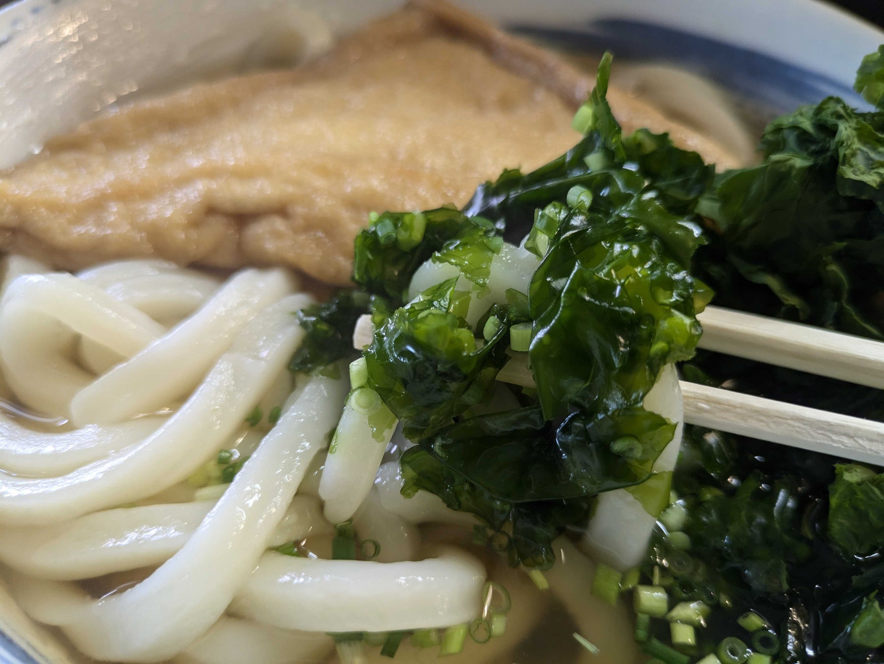 キツネうどんや、天かす、肉うどんなどに、あつばアオサを軽めの手掴み(1g未満)加えるだけ。あつばアオサの苦味と一緒に食べることで油脂類の旨味と調和され、ワンランク上のお料理になります。