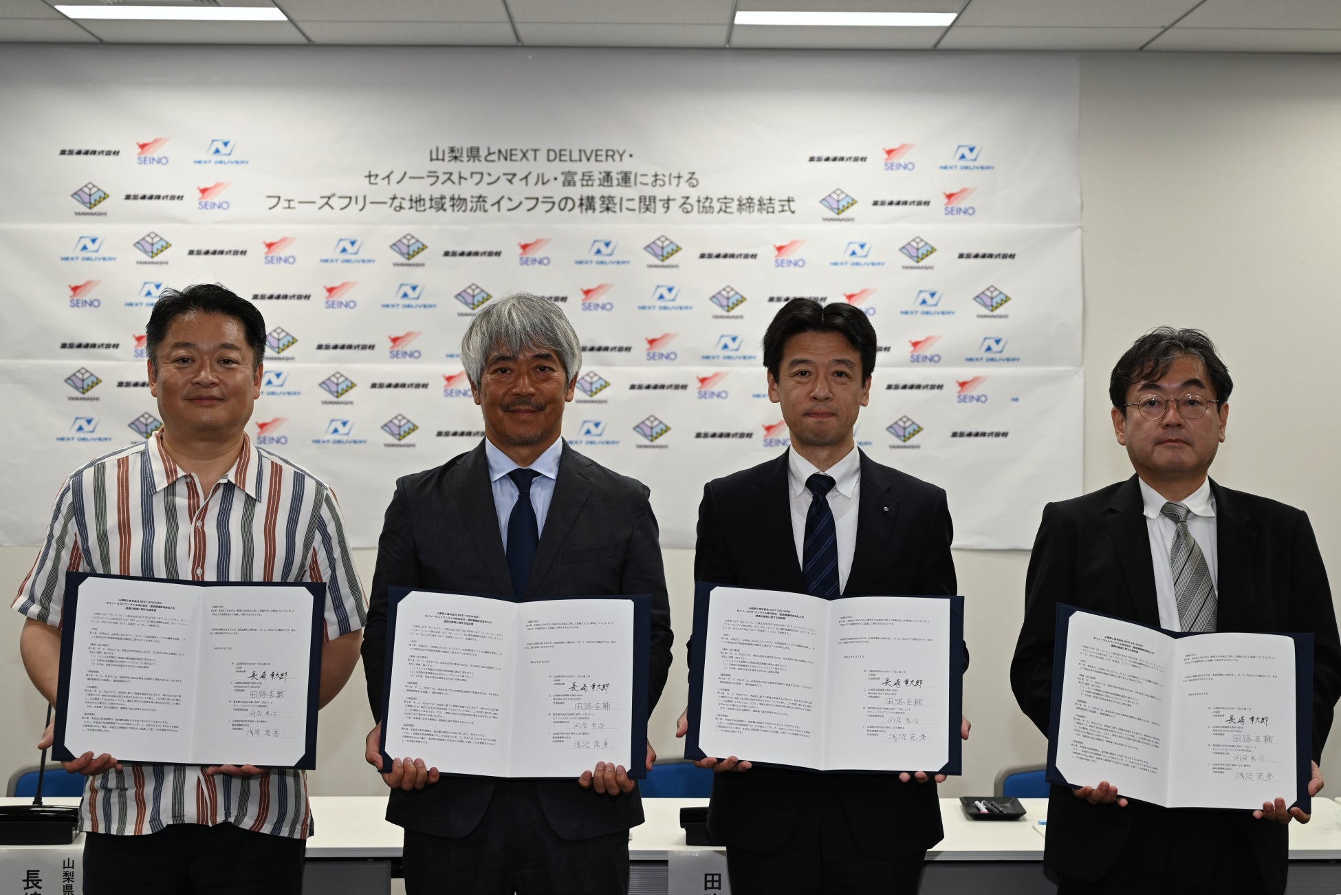 山梨県、株式会社NEXT DELIVERY、セイノーラストワンマイル株式会社、富岳通運株式会社が山梨県におけるフェーズフリーな地域物流インフラの構築に向けた連携協定を締結