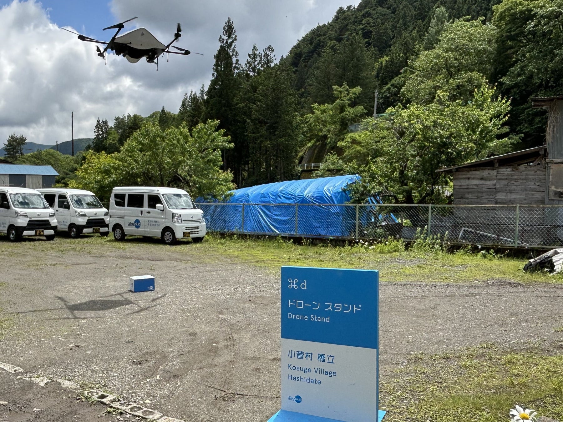 NEXT DELIVERYの親会社である株式会社エアロネクスト(以下 エアロネクスト)とセイノーホールディングス株式会社(以下 セイノーHD)は、トラックや軽バン等の陸上配送にドローン輸送を組み合わせて物流を効率化する新スマート物流*1SkyHub®*2を、山梨県の第1期TRY!YAMANASHI!実証実験サポート事業による試験的運用を経て、2021年10月から日本で初めて小菅村にて社会実装し、現在では北海道上士幌町や福井県敦賀市をはじめ全国10ヶ所で展開しています。