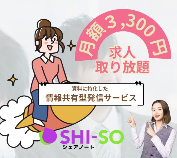 求人情報をPDFでアップするだけ。1求人掲載無料のSHI-SOシェアノート【初期費用ゼロ・獲得単価ゼロ・月額3,300円】