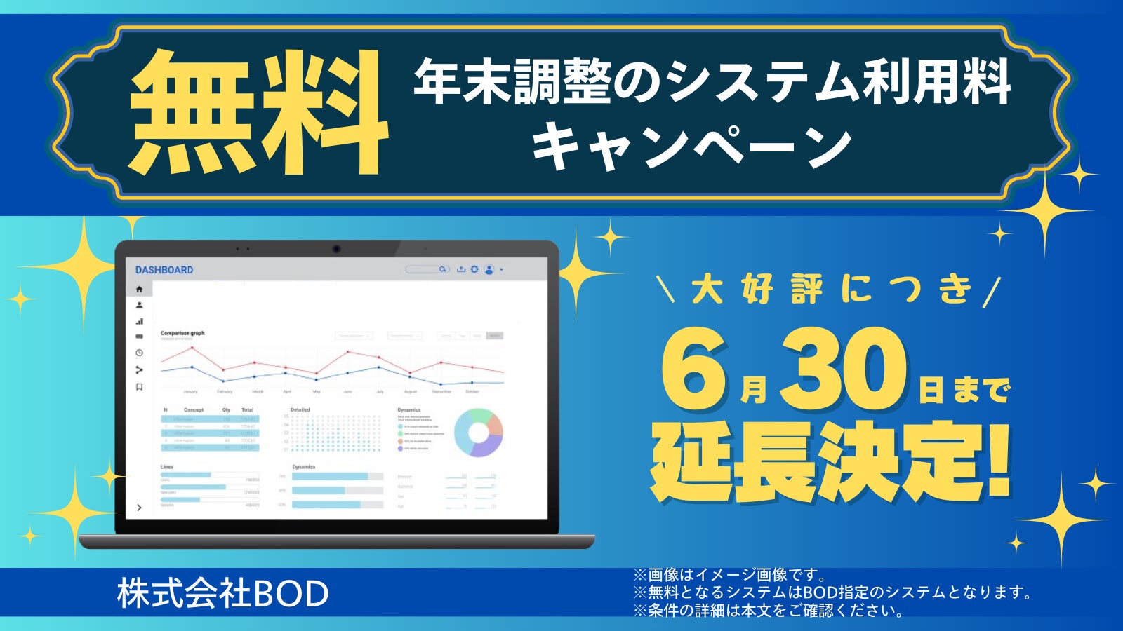 BODでは、多くの反響をいただき、「年末調整システム利用料 無料キャンペーン」を6月30日まで延長しました。