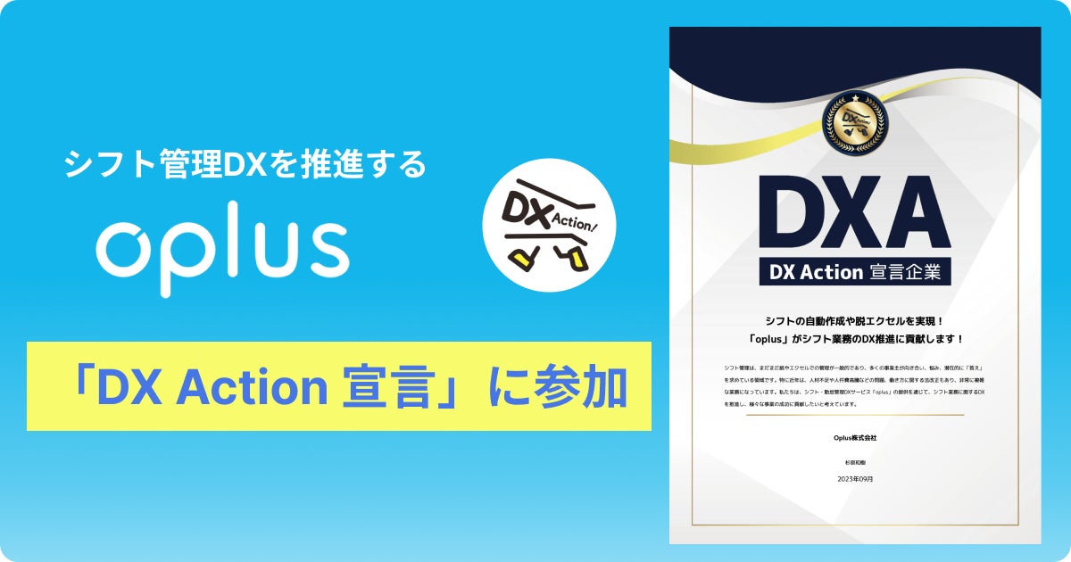 シフト管理DXを推進するOplus、DX推進応援プロジェクト「DX Action宣言」に参加