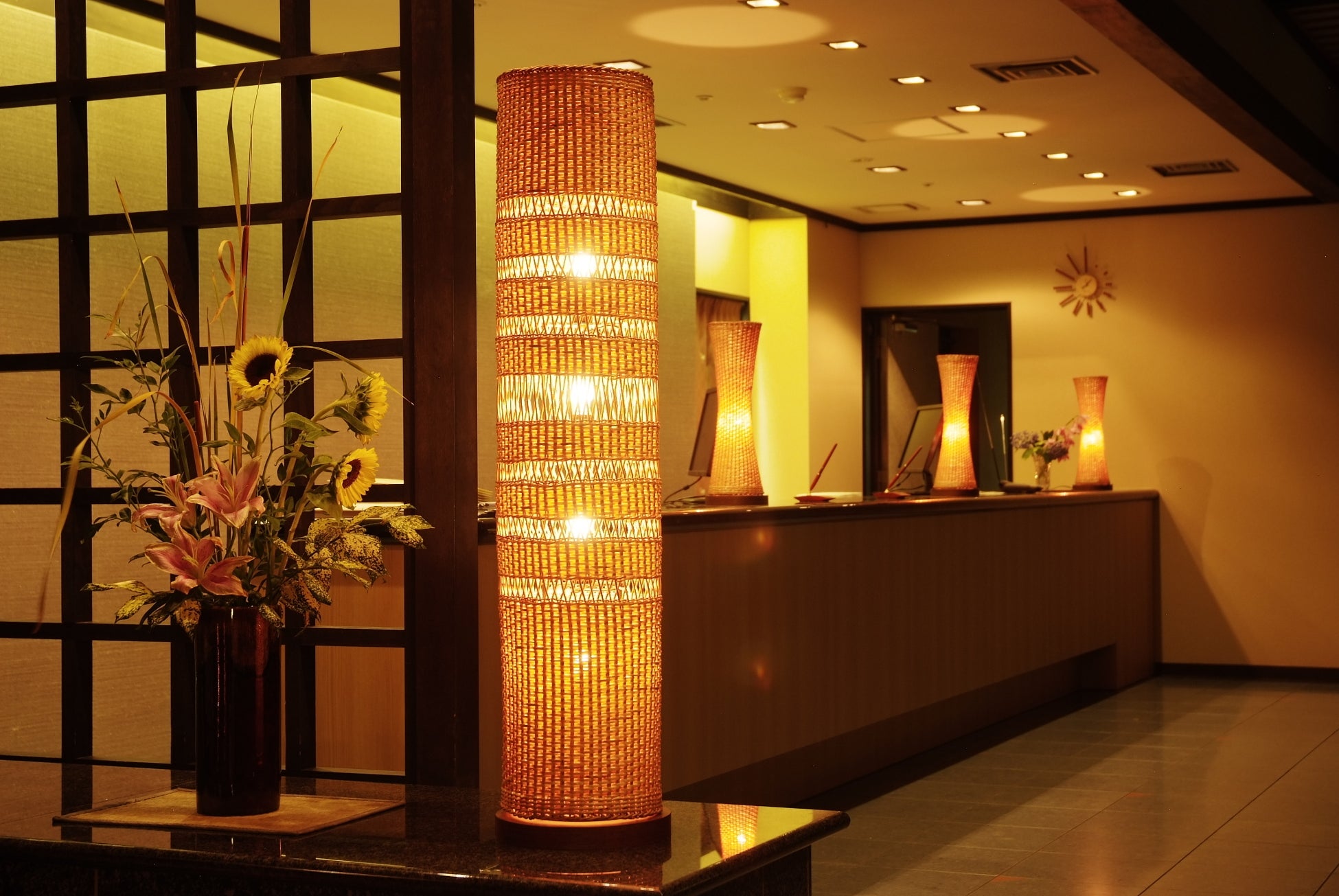 美人の湯として知られる兵庫県北部の湯村温泉に位置し、兵庫の伝統工芸品「豊岡杞柳(きりゅう)細工」をモチーフに’編む’というコンセプトで館内をデザイン。