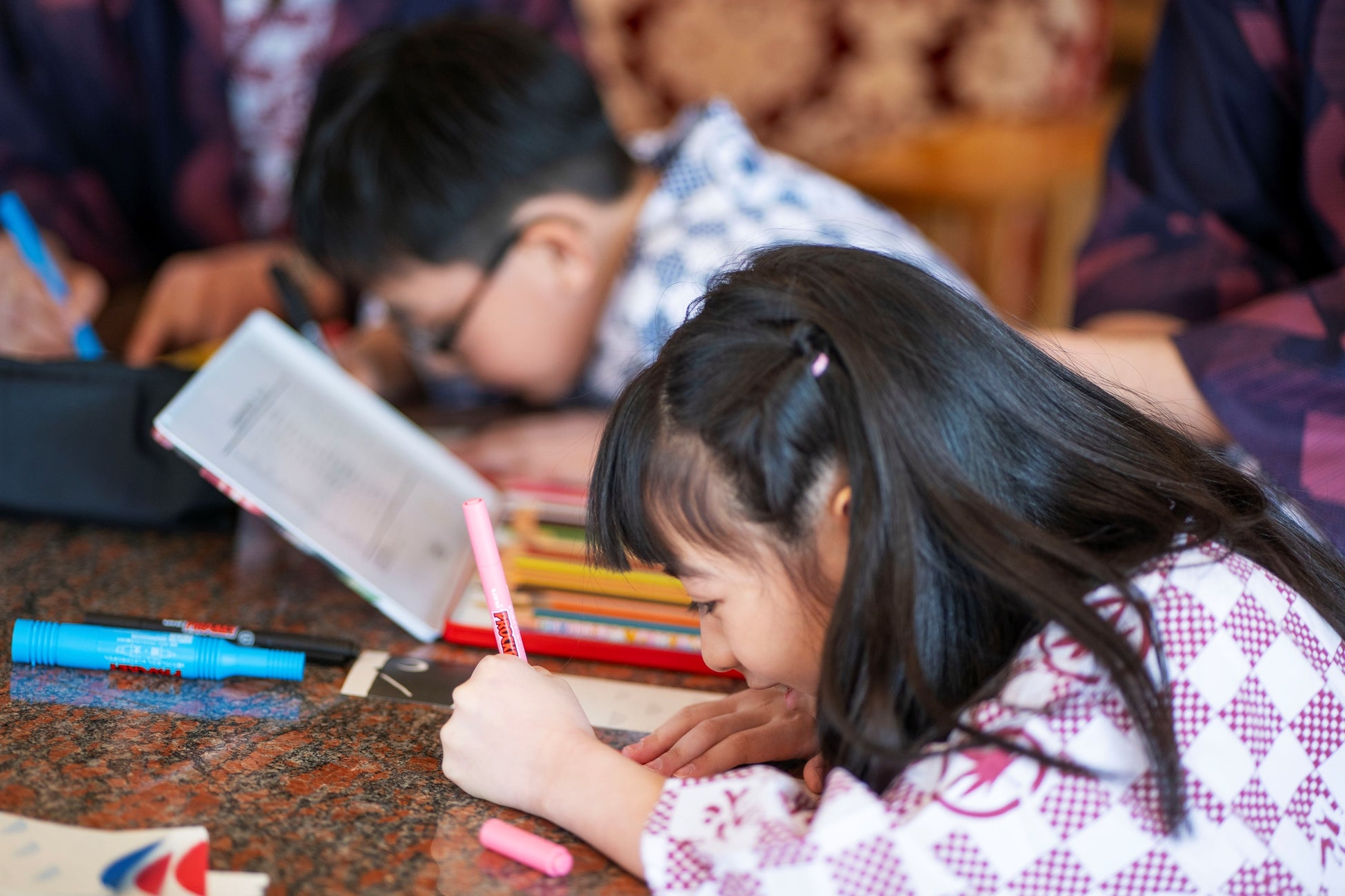鯉のぼりの姿が描かれた短冊へ、大切な方やご自身に向けた思い思いの願いをしたため、温泉街を彩る渓流鯉のぼりと同じく連なるように吊します。